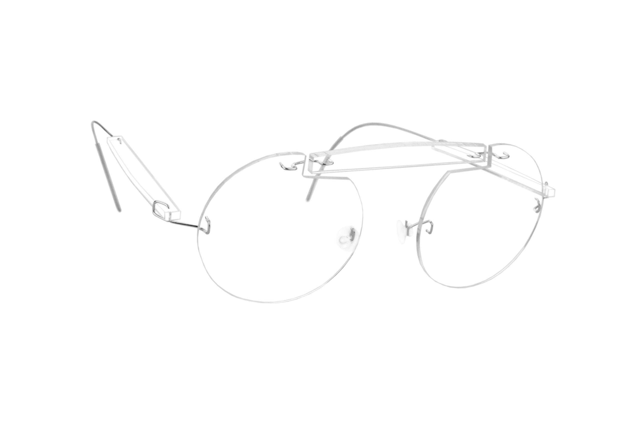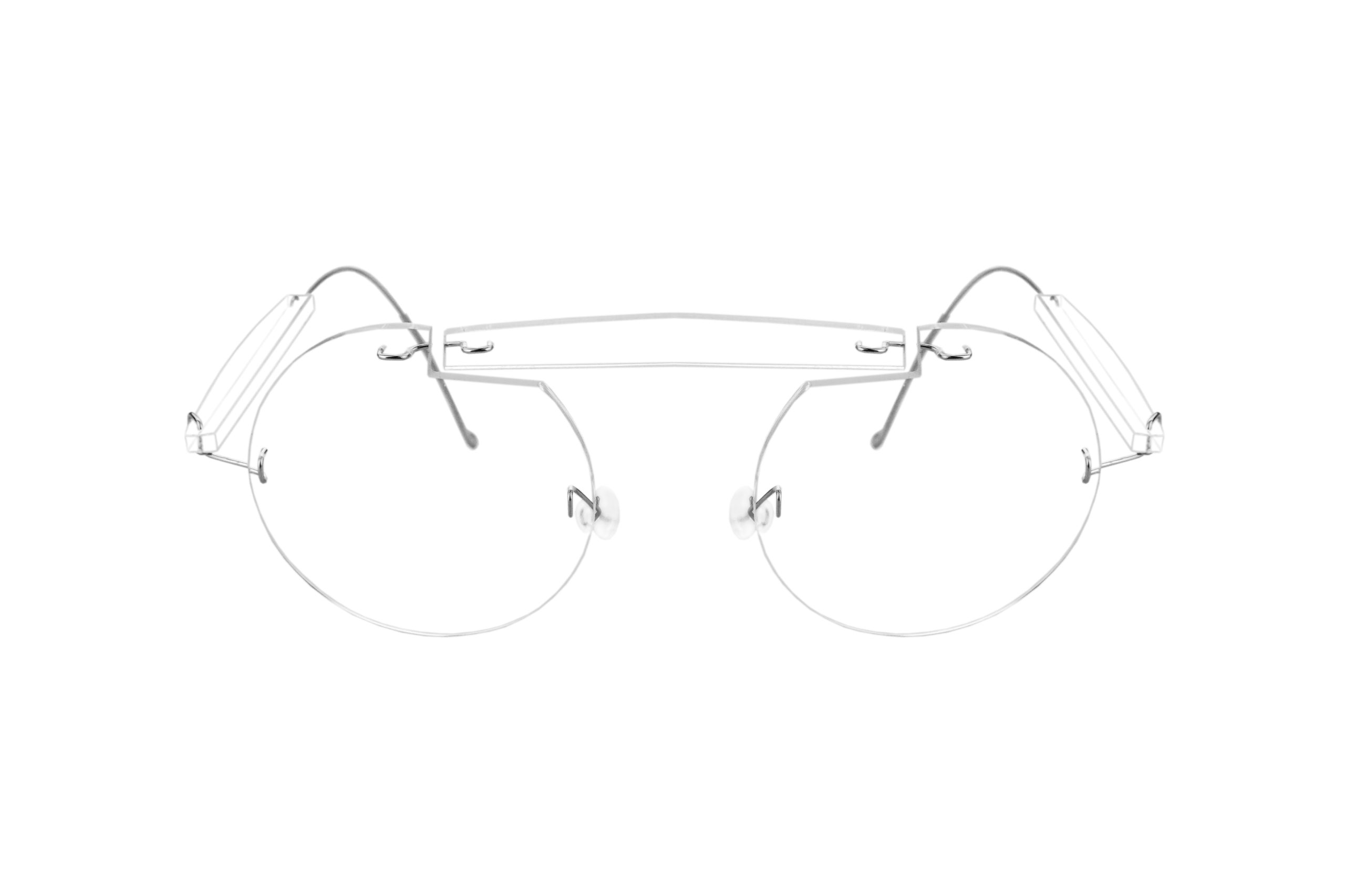 Very resistant and light, thanks to the use of reinforced titanium for hinges and bridge, these Adio eyeglasses mount front and bridge in transparent plexiglas and titanium.