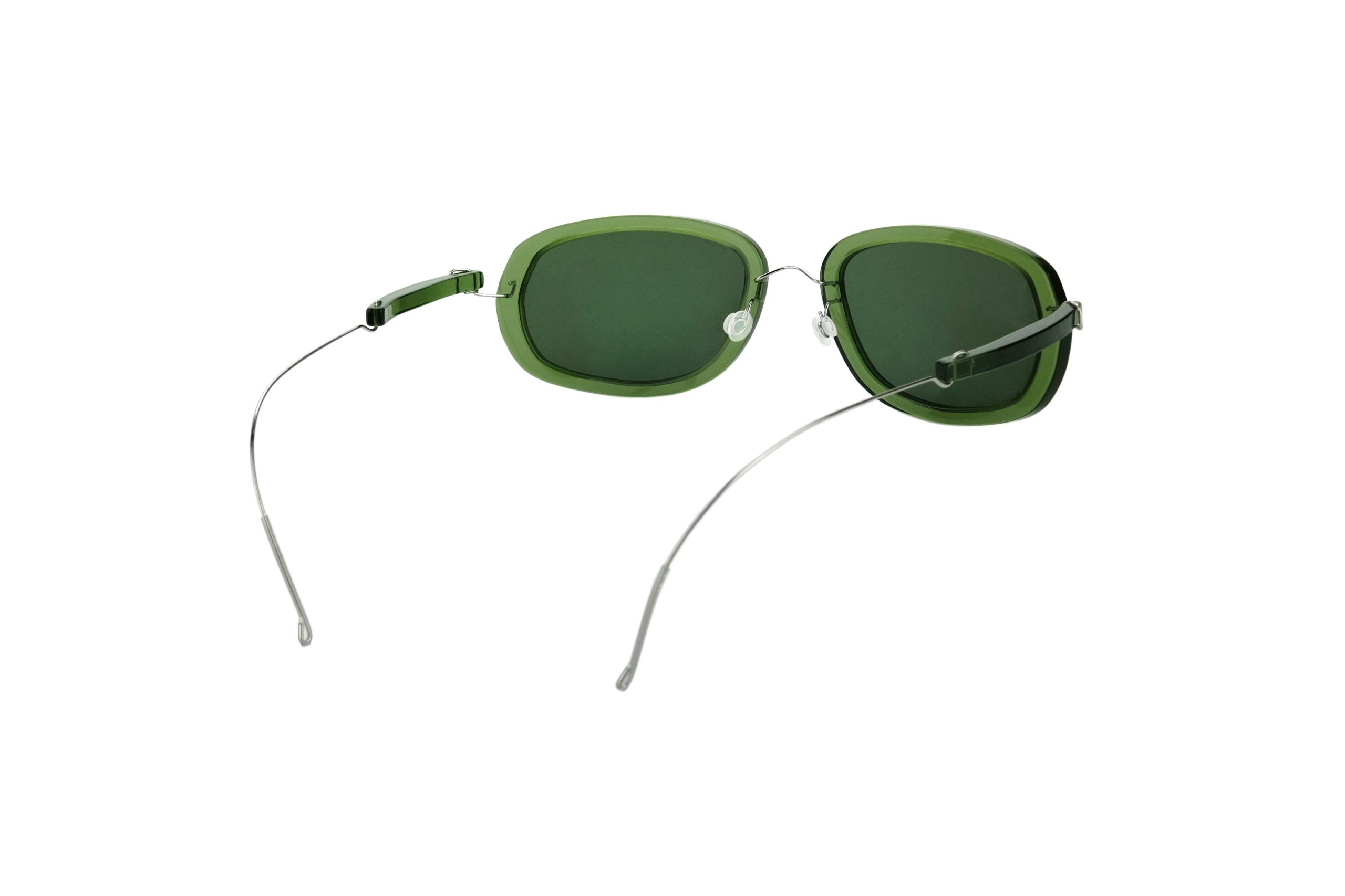 | Frame | Transparent Dark Green Acetate and Titanium temples and front |