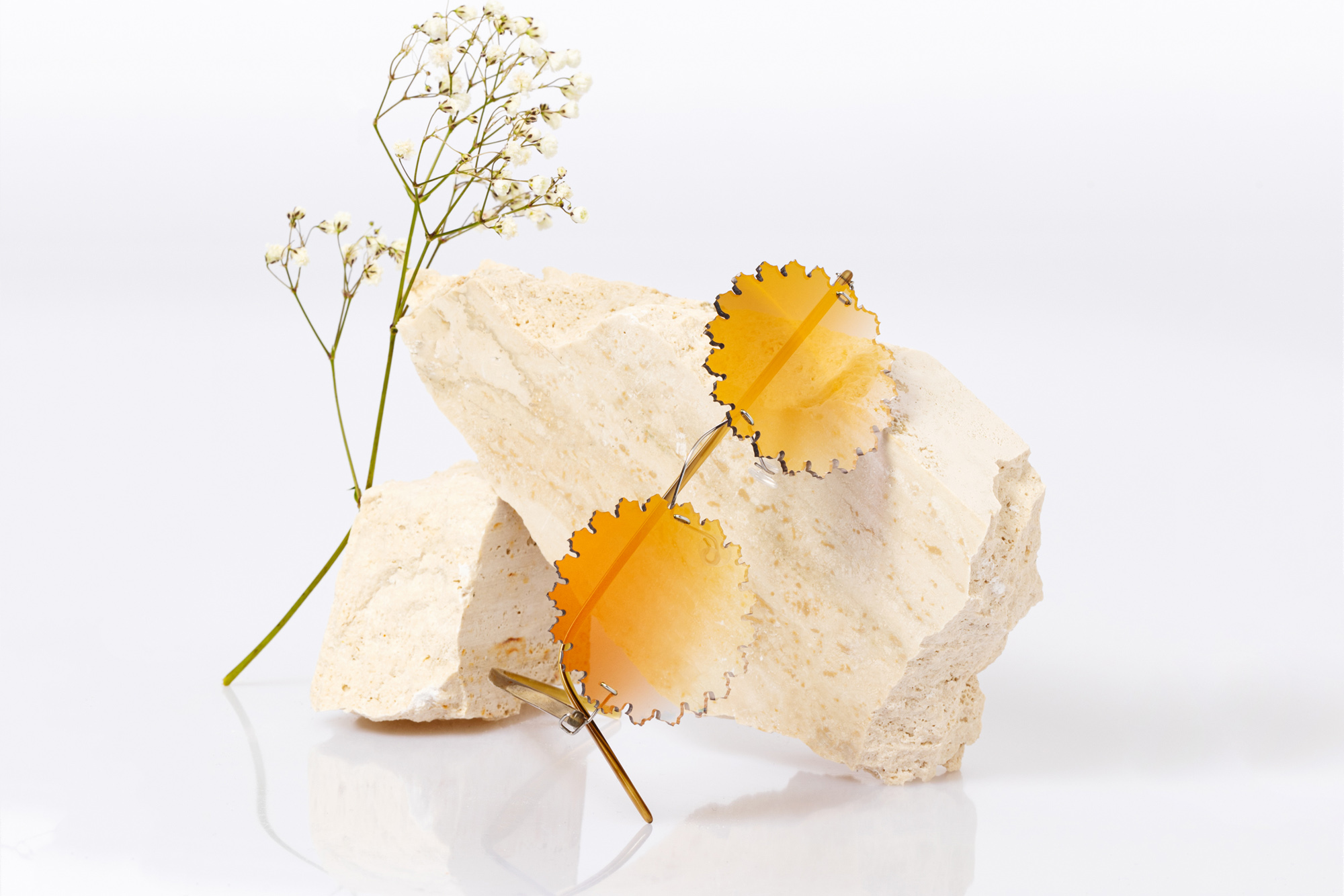 Very resistant and light, thanks to the use of reinforced titanium for hinges and bridge, these Ílios sunglasses mount natural dappled horn temples.