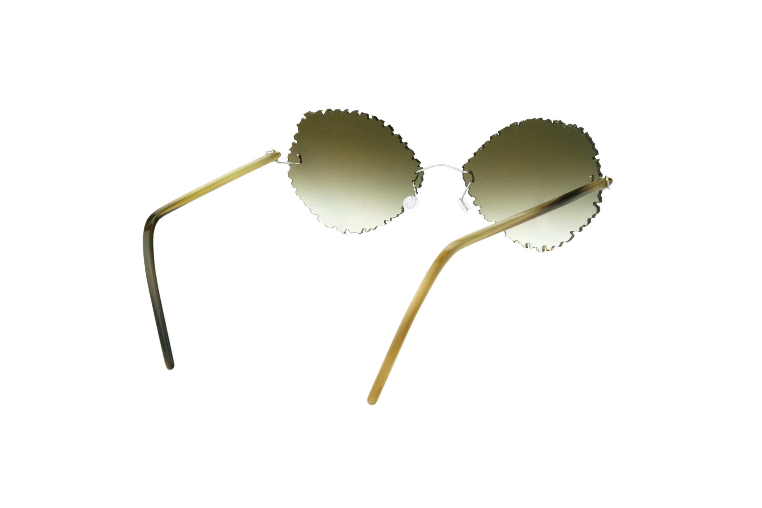 Very resistant and light, thanks to the use of reinforced titanium for hinges and bridge, these Iraclia sunglasses mount natural light brown horn temples.