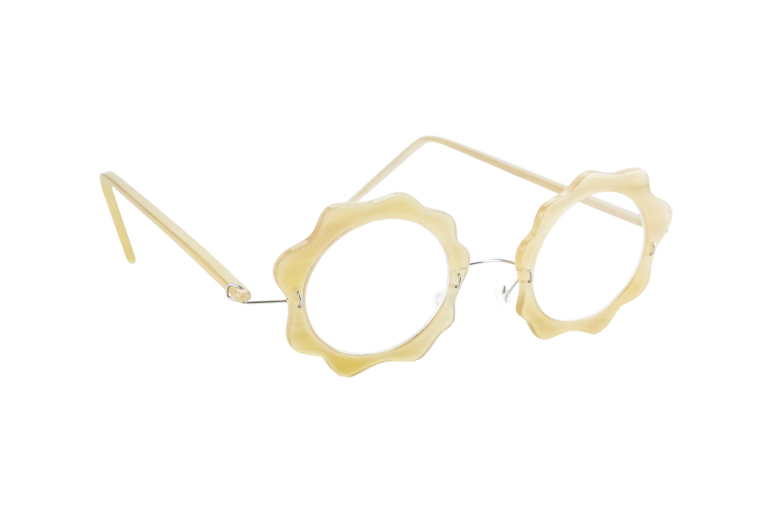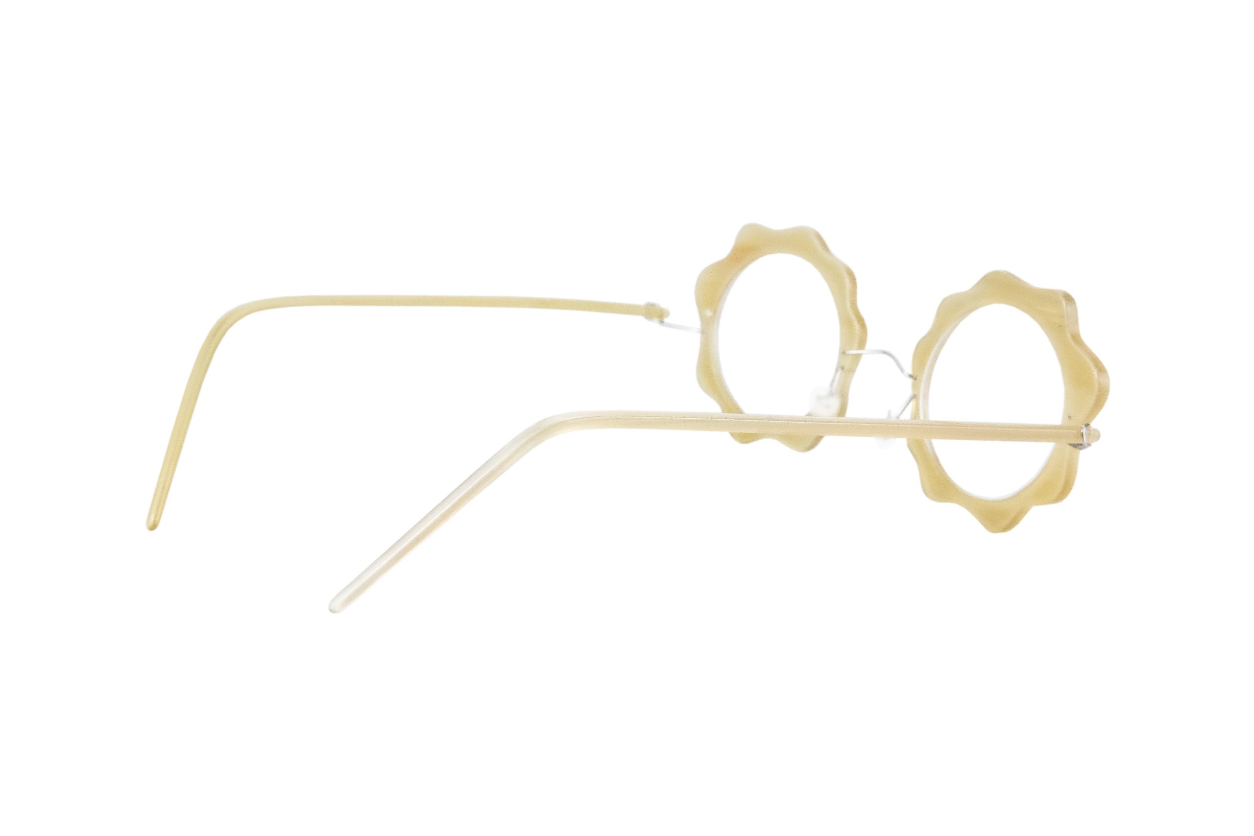 Very resistant and light, thanks to the use of reinforced titanium for hinges and bridge, these Itaca eyeglasses mount natural honey horn temples and front.