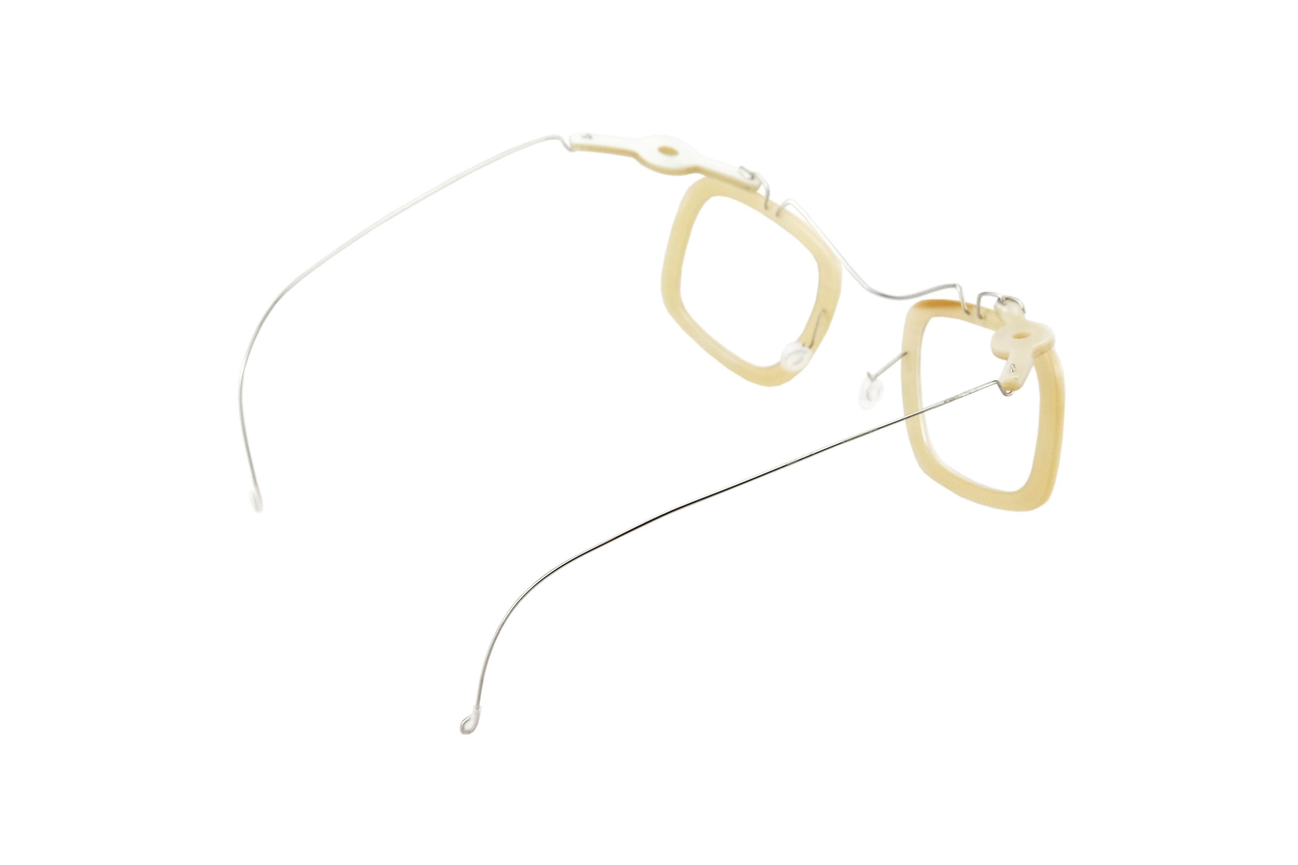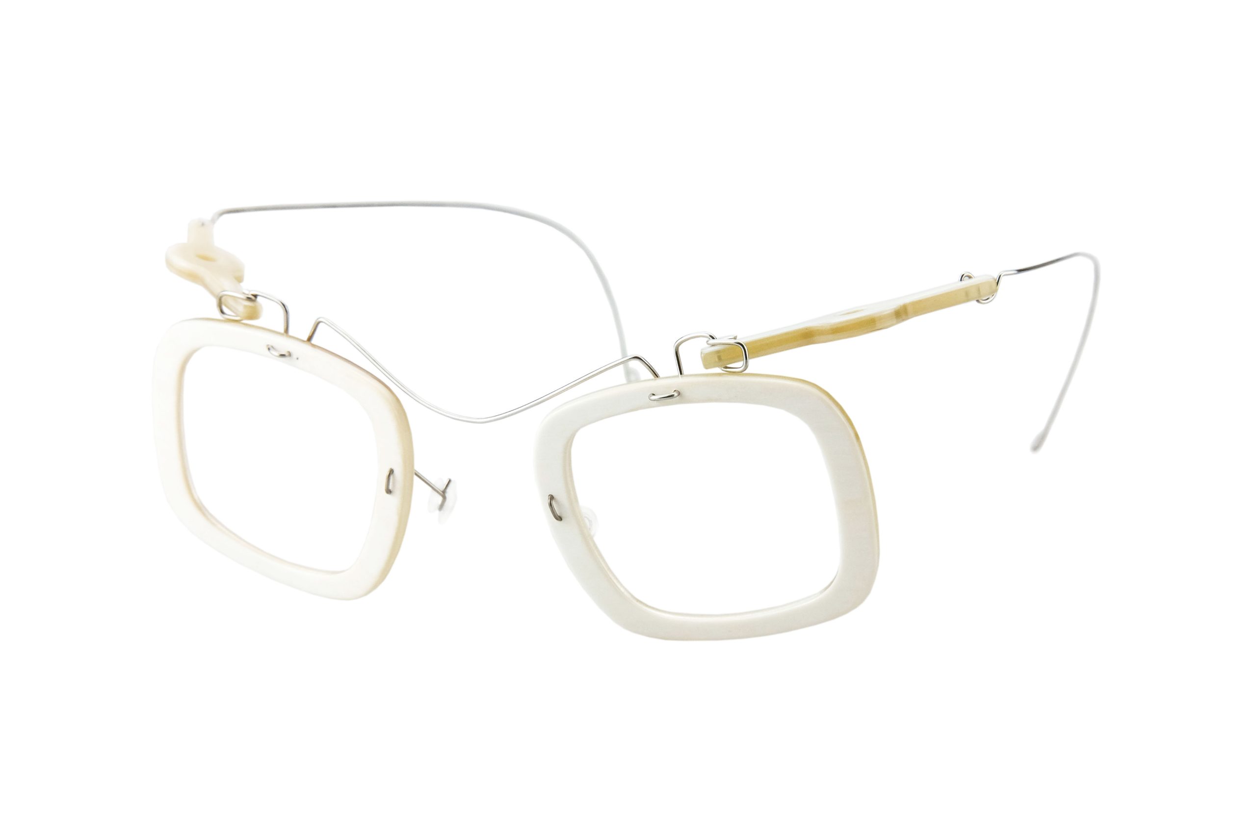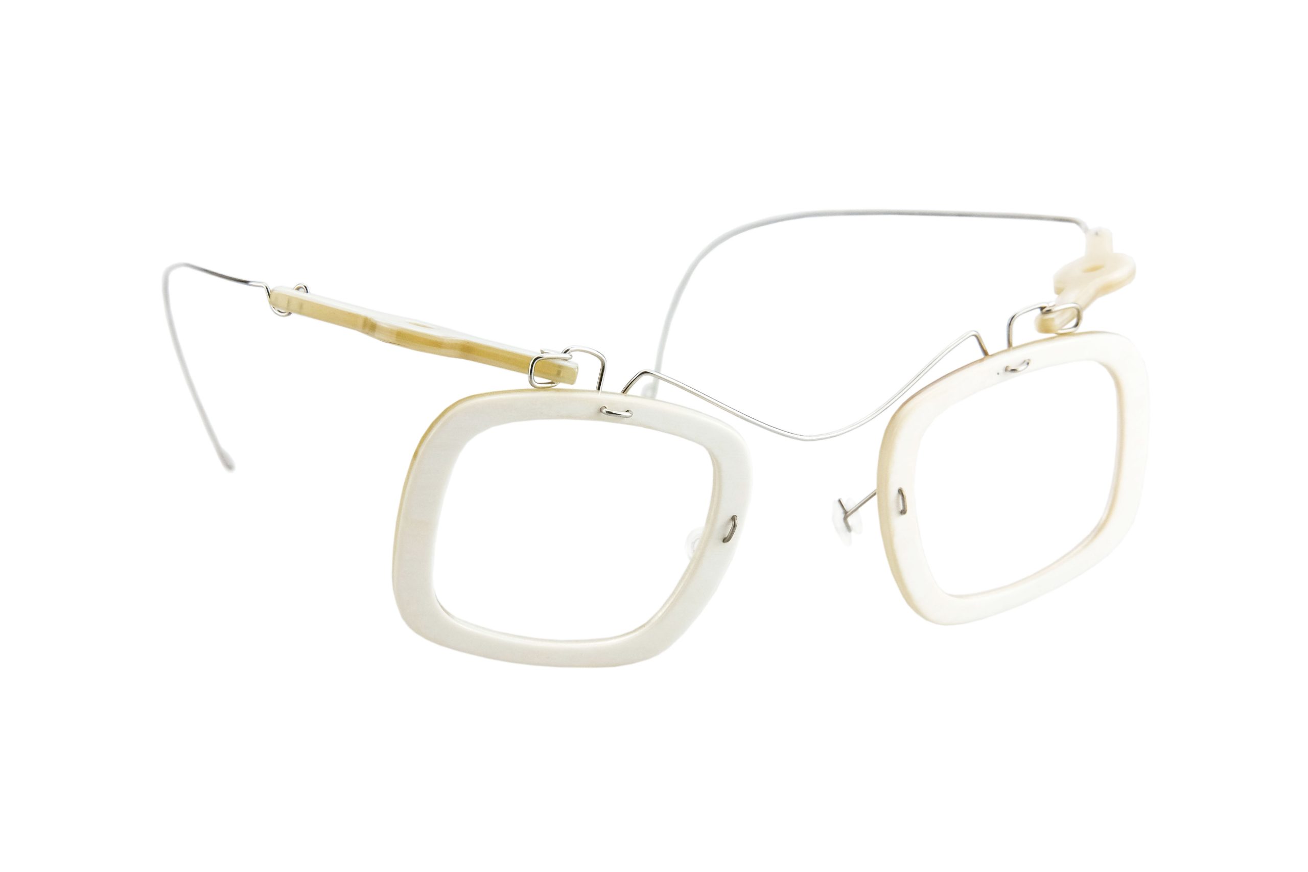 Very resistant and light, thanks to the use of reinforced titanium for hinges and bridge, these Kiani eyeglasses mount natural white horn temples and front.