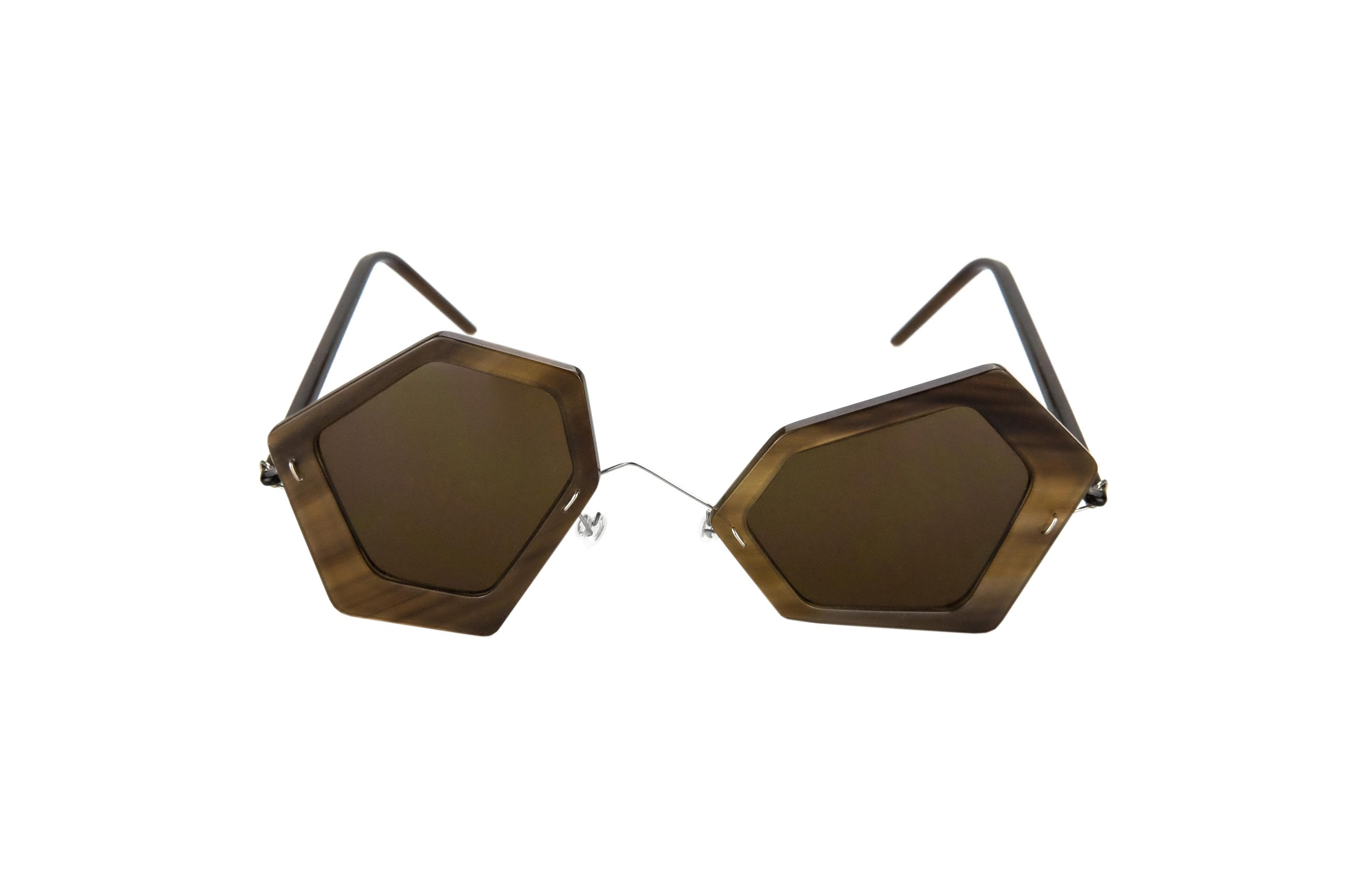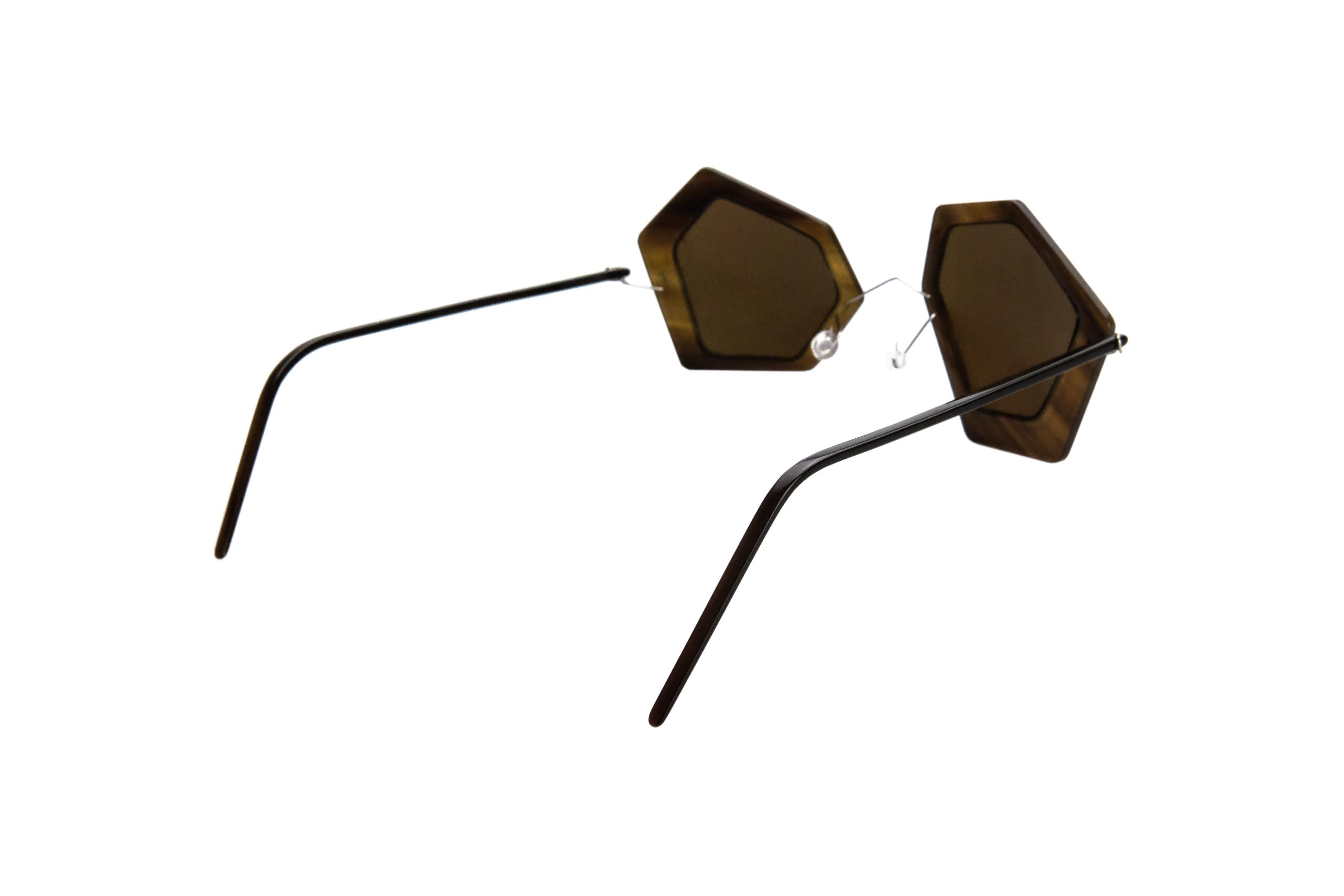 Very resistant and light, thanks to the use of reinforced titanium for hinges and bridge, these Marmaro Paráxenos sunglasses mount natural brown horn temples and front.