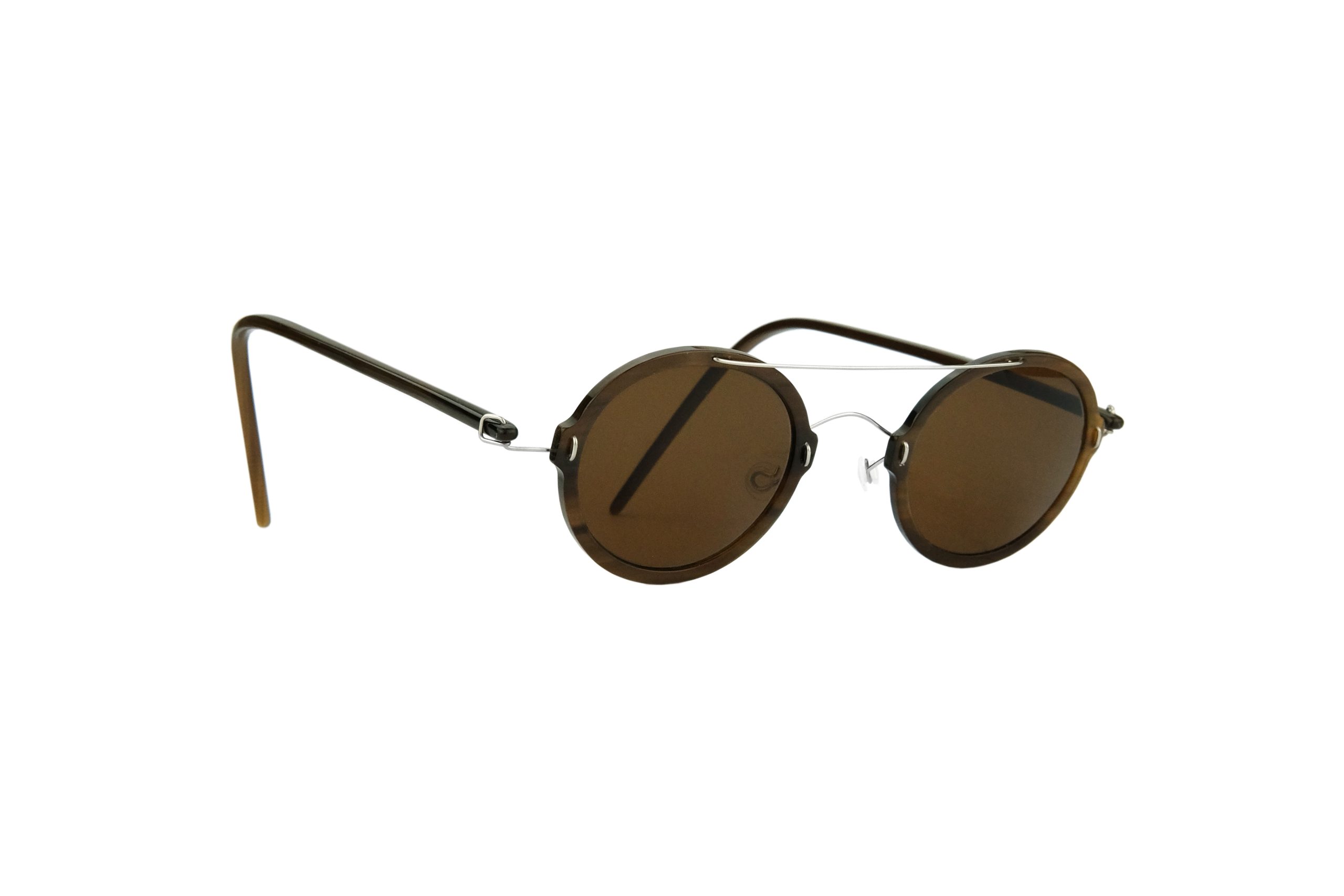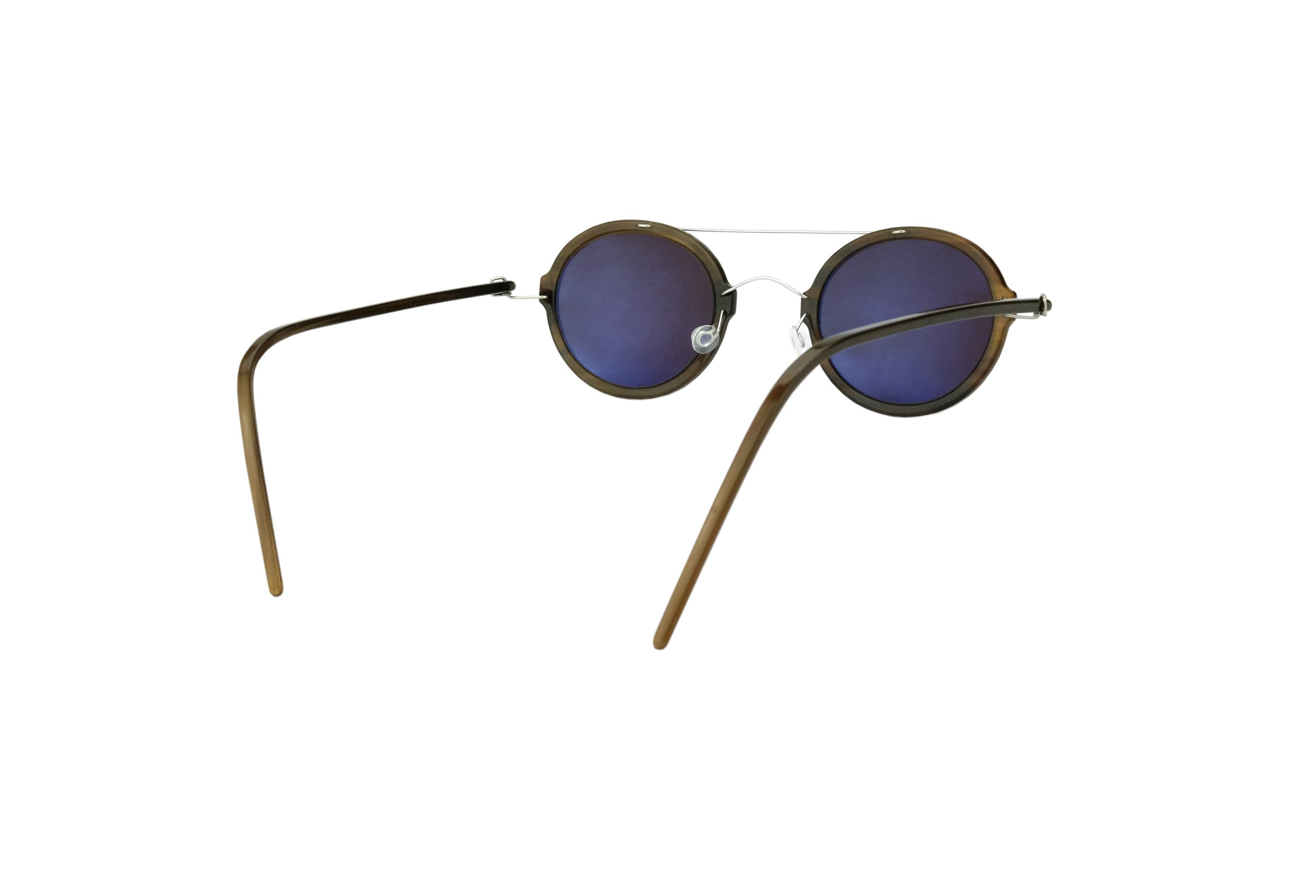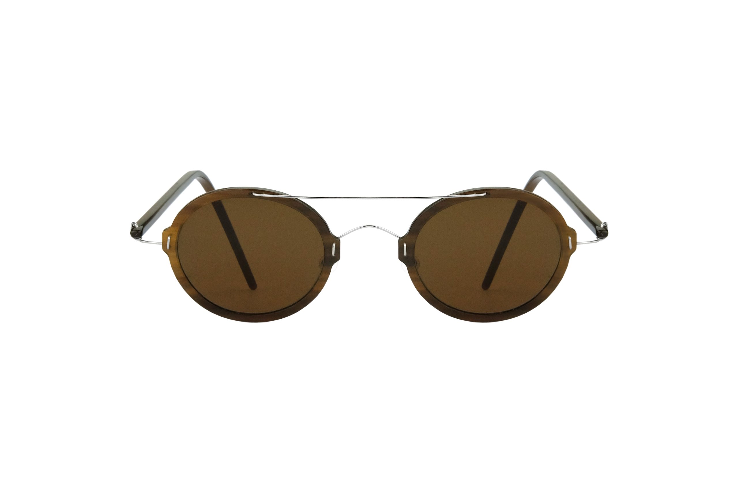 Very resistant and light, thanks to the use of reinforced titanium for hinges and bridge, these Milo sunglasses mount natural brown horn temples and front.