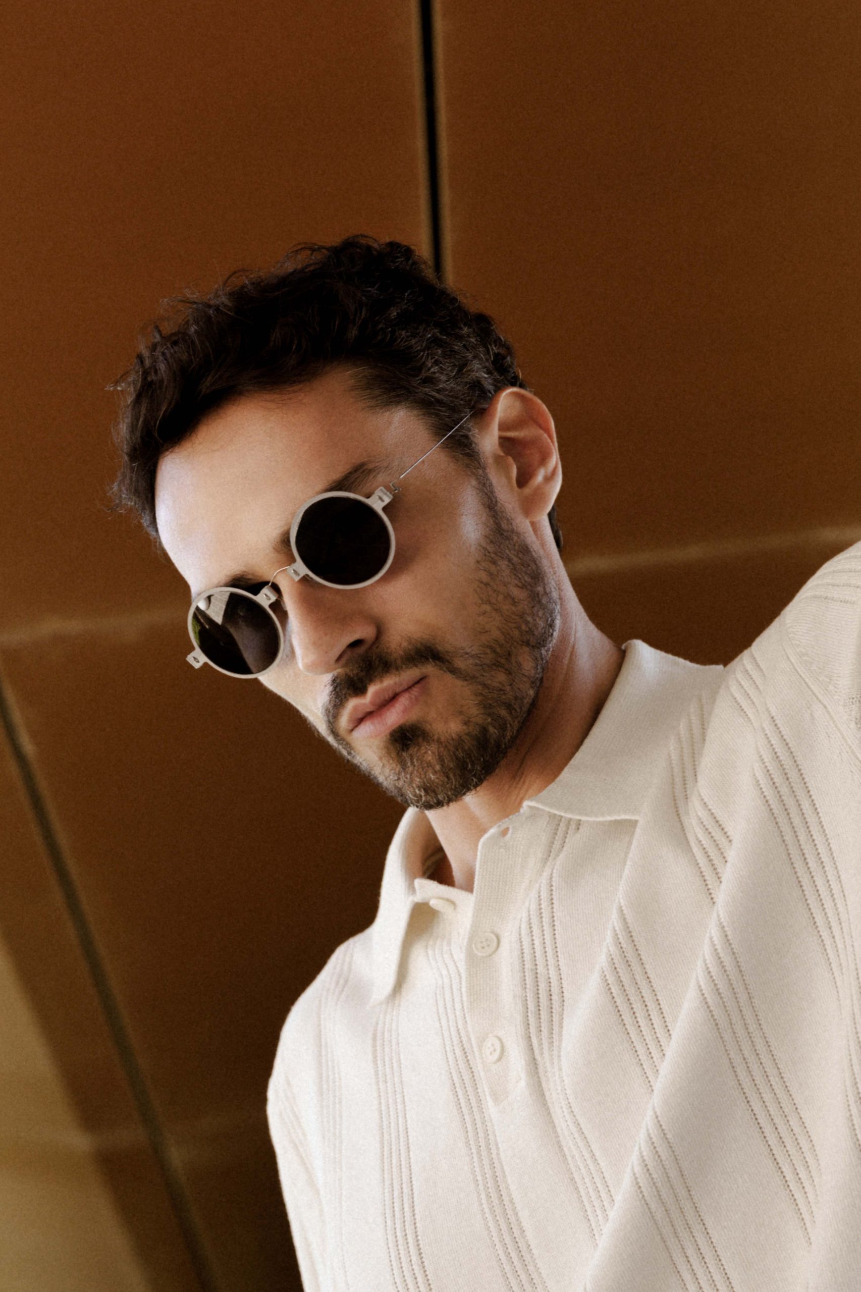 Very resistant and light, thanks to the use of reinforced titanium for hinges and bridge, these Othoni sunglasses mount natural titanium temples and metal front.