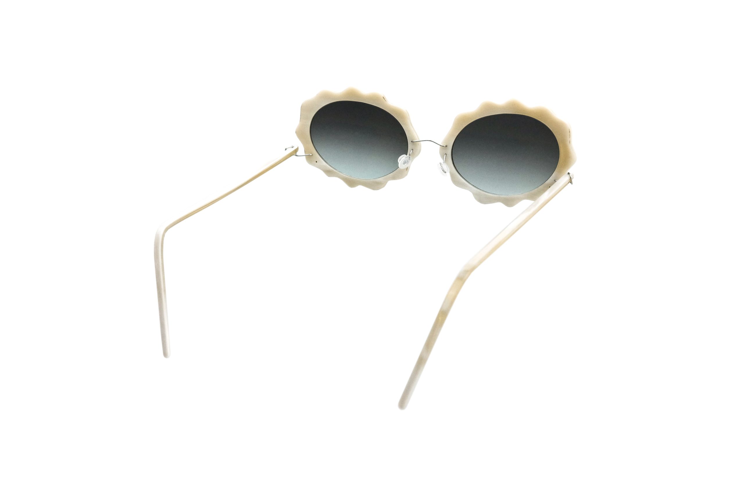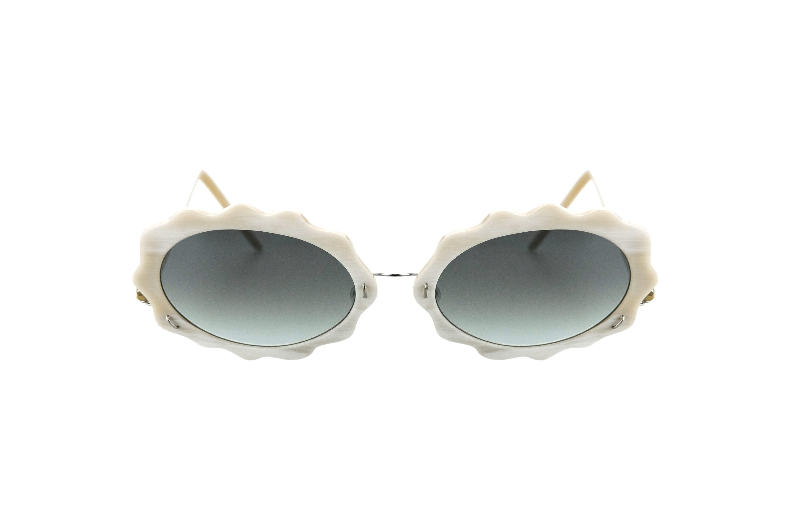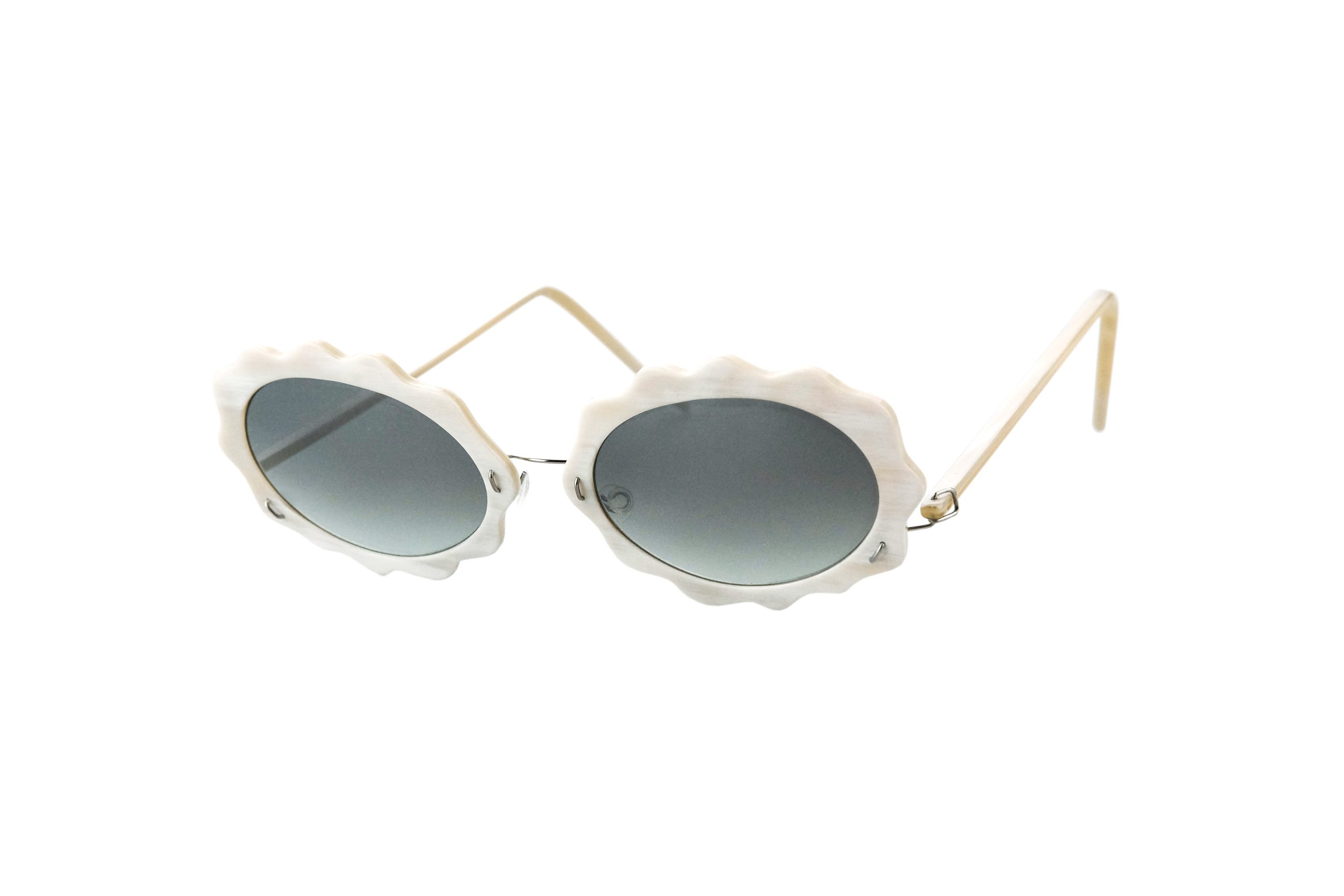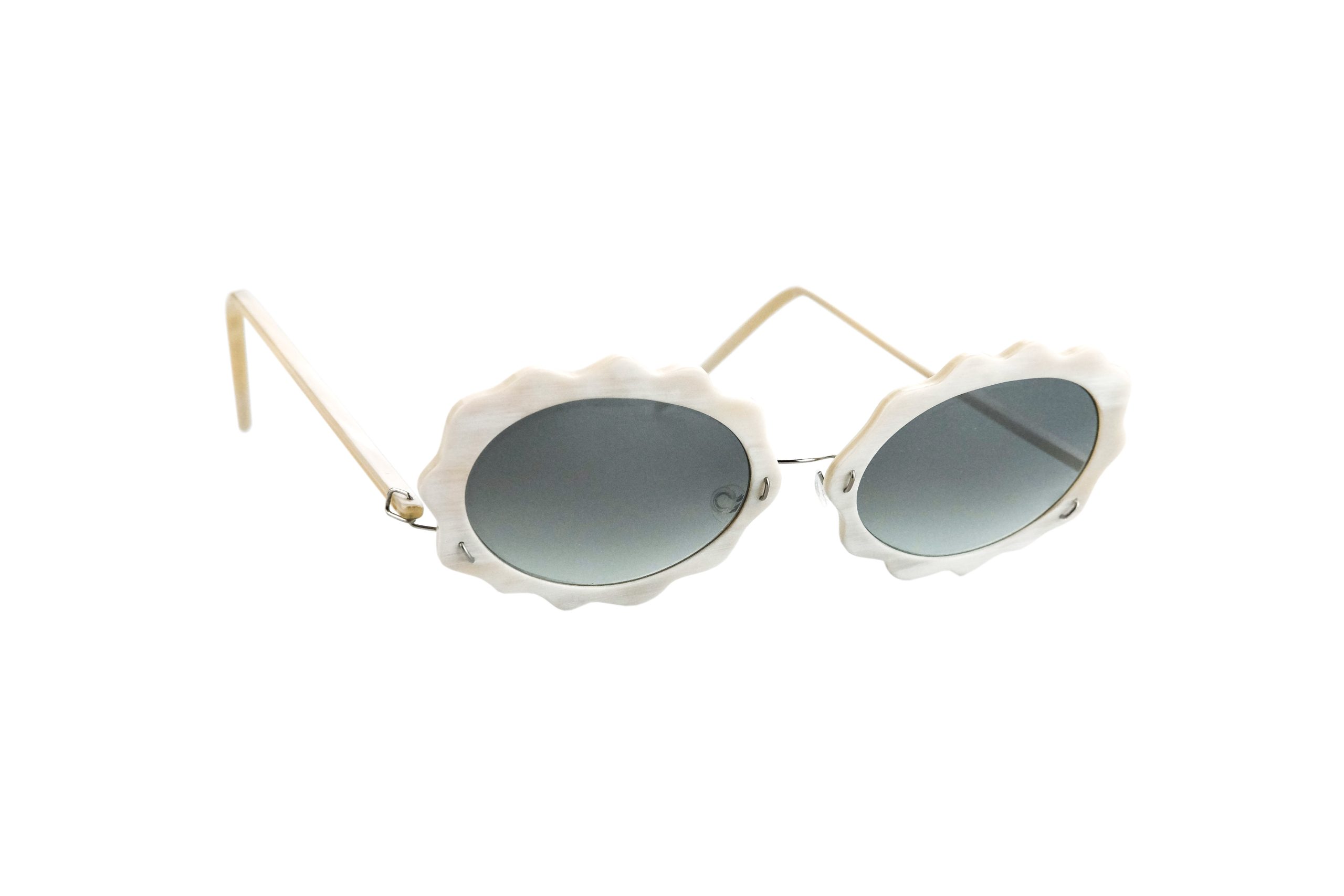 Very resistant and light, thanks to the use of reinforced titanium for hinges and bridge, these Pachia sunglasses mount natural white horn temples and front.