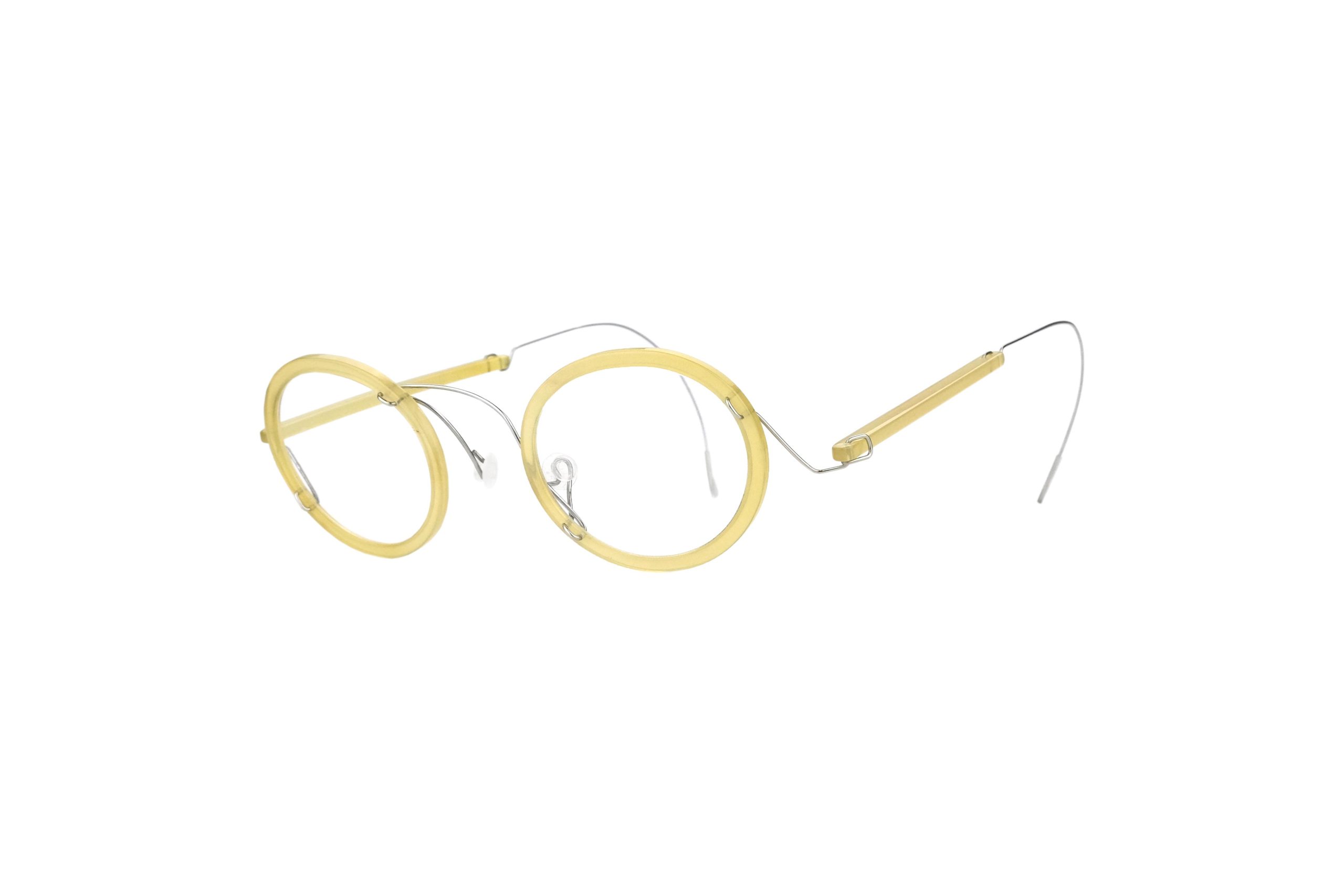 Very resistant and light, thanks to the use of reinforced titanium for hinges and bridge, these Sfentouri eyeglasses mount natural honey horn and titanium temples and front .