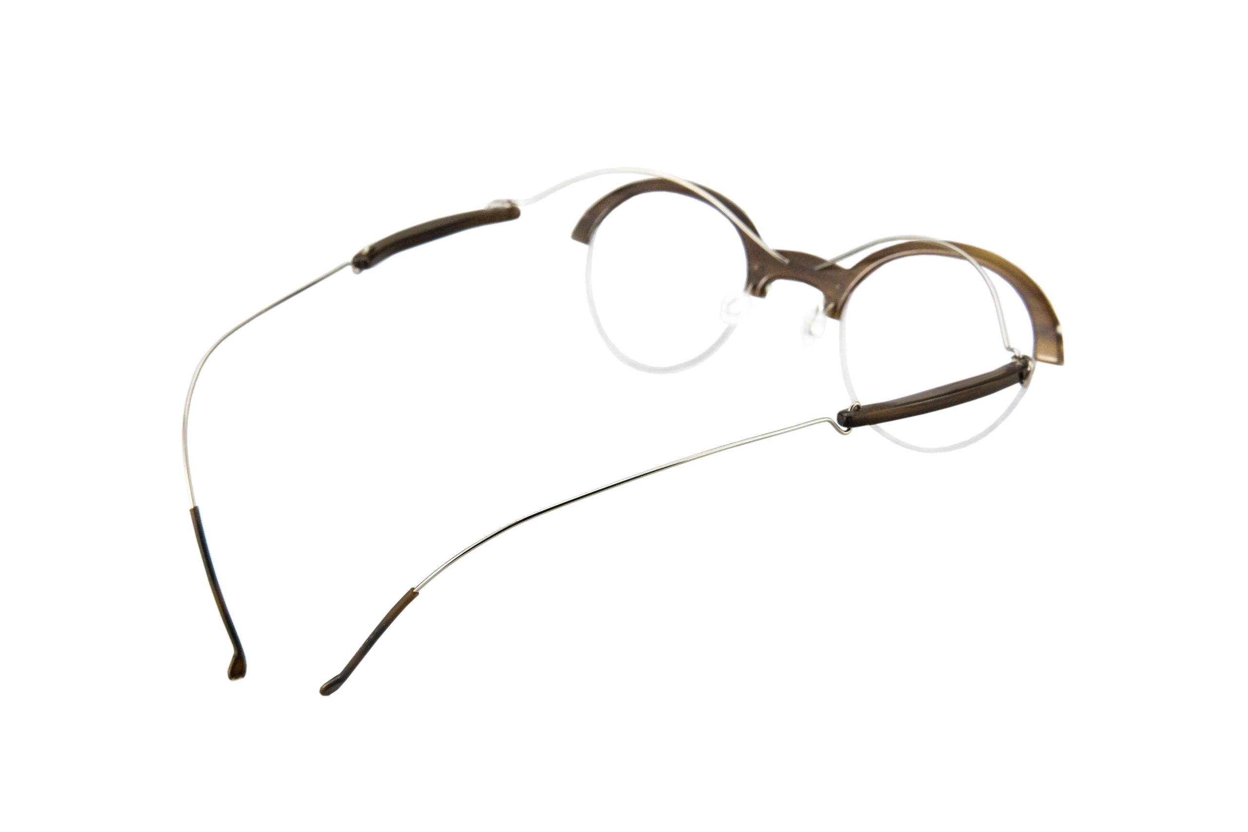 Very resistant and light, thanks to the use of reinforced titanium for hinges and bridge, these Siponto eyeglasses mount natural brown horn temples and front.
