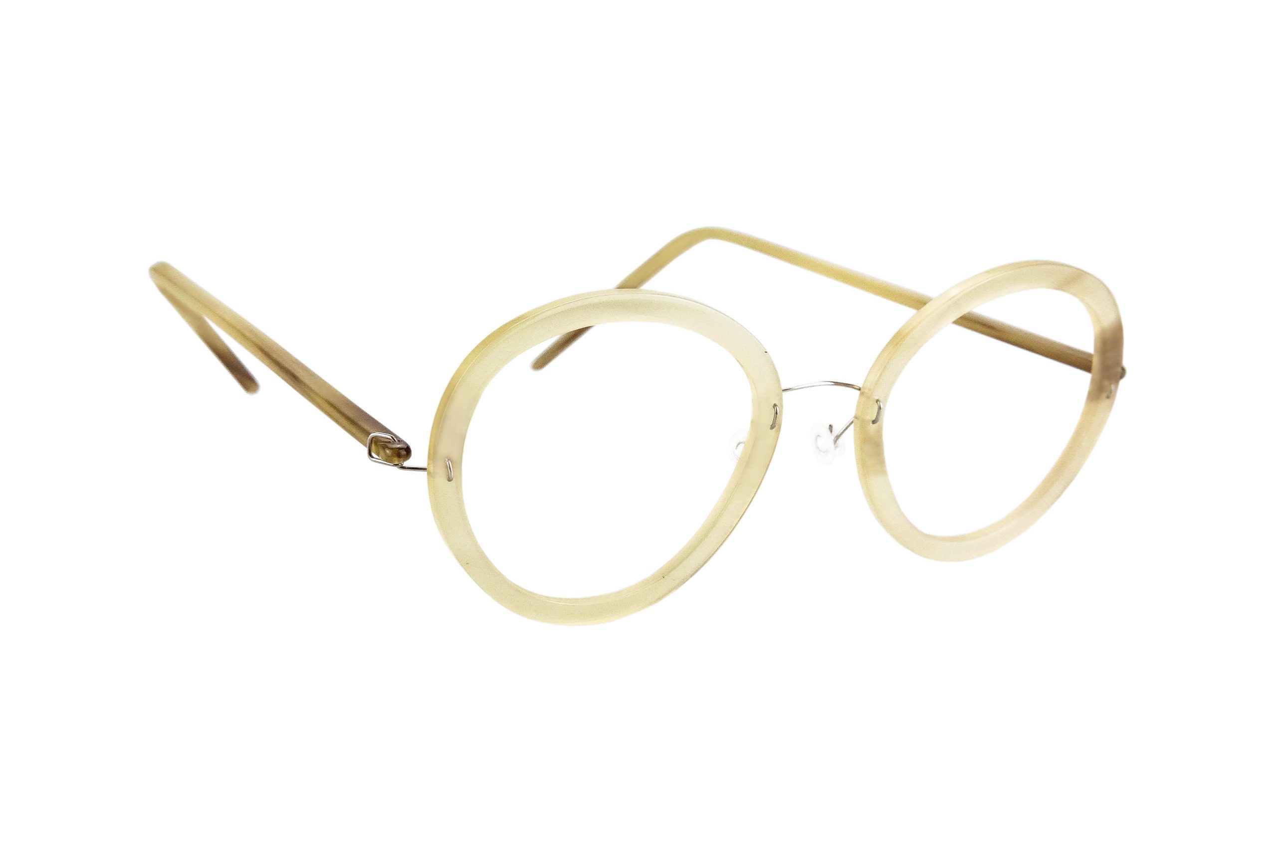 Very resistant and light, thanks to the use of reinforced titanium for hinges and bridge, these Strofadi eyeglasses mount natural honey horn temples and front.