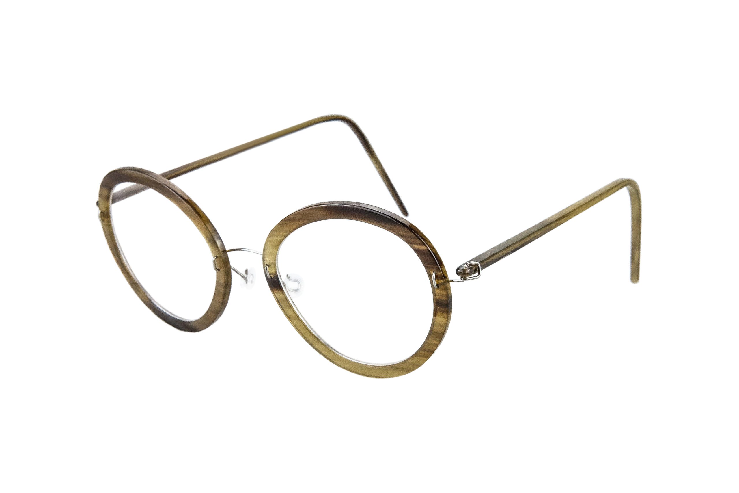 Very resistant and light, thanks to the use of reinforced titanium for hinges and bridge, these Strofadi eyeglasses mount natural dappled horn temples and front.
