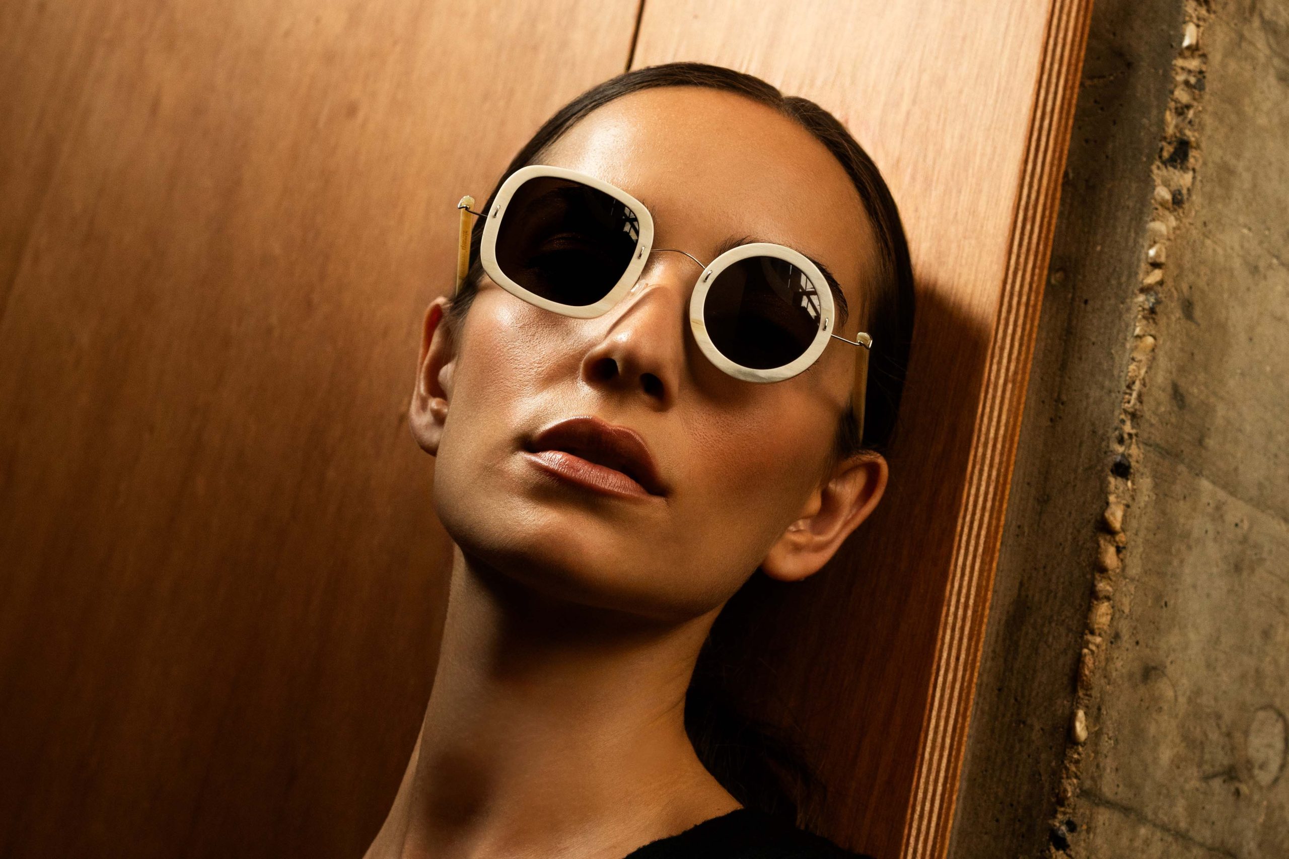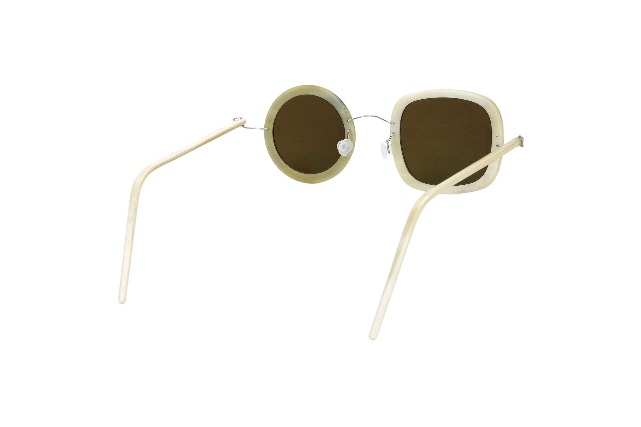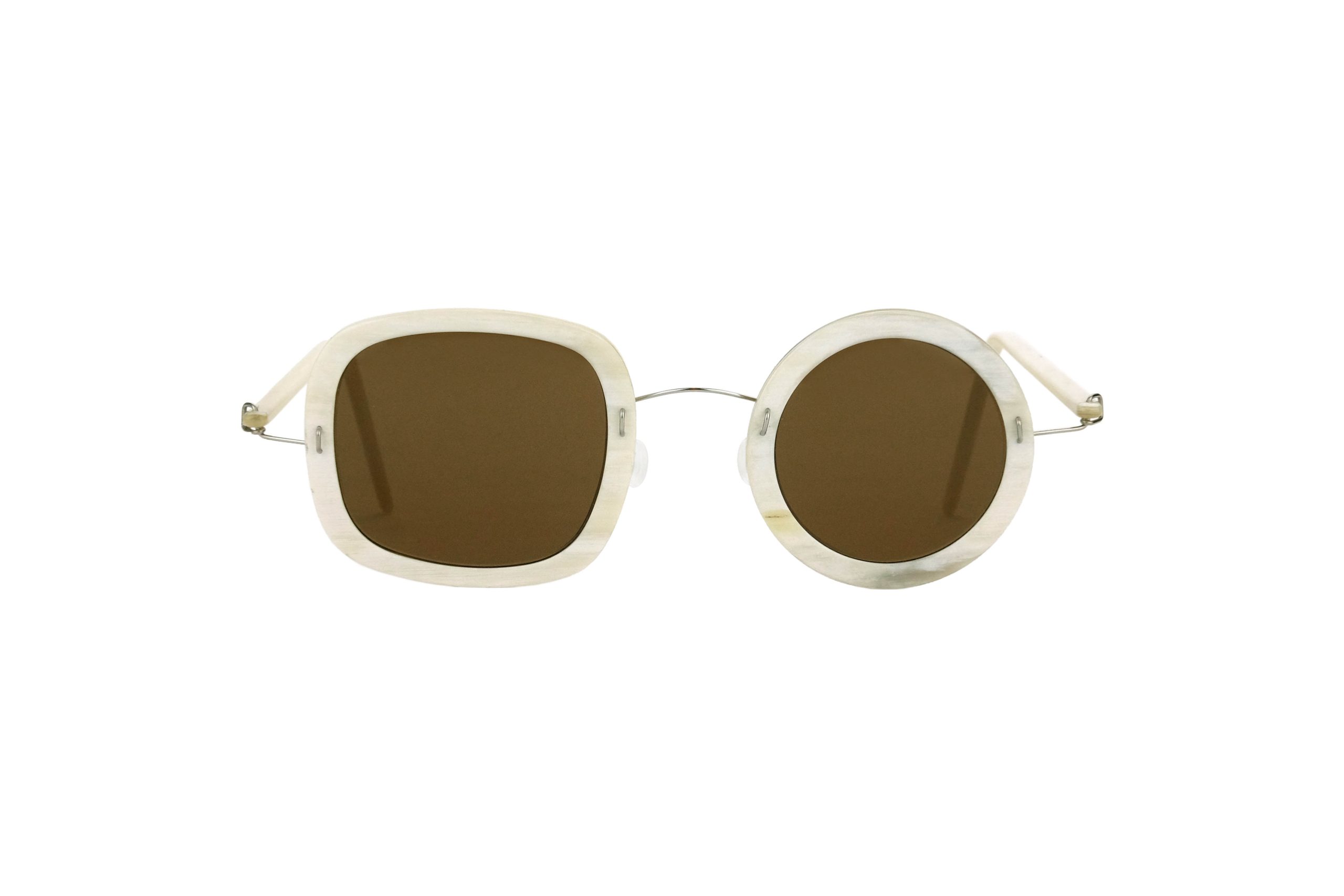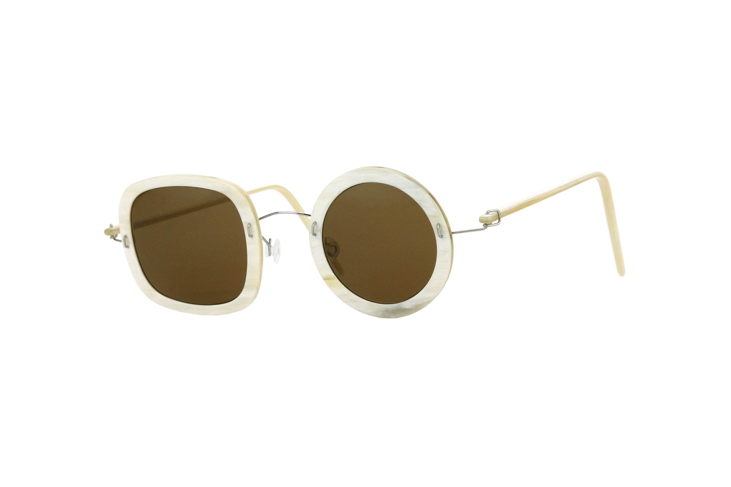 Very resistant and light, thanks to the use of reinforced titanium for hinges and bridge, these Symi sunglasses mount natural white horn temples and front.