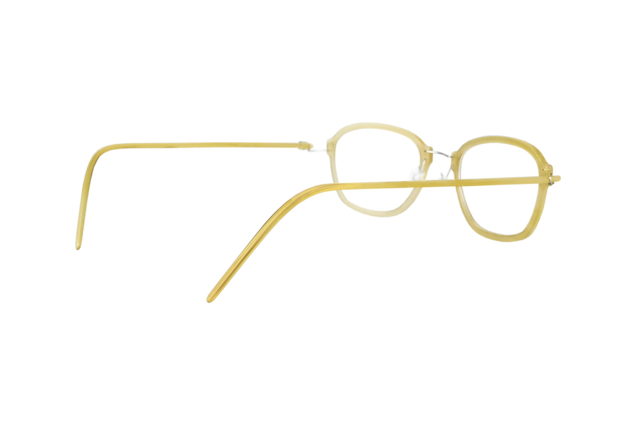 Very resistant and light, thanks to the use of reinforced titanium for hinges and bridge, these Taumante eyeglasses mount natural horn honey temples and front.