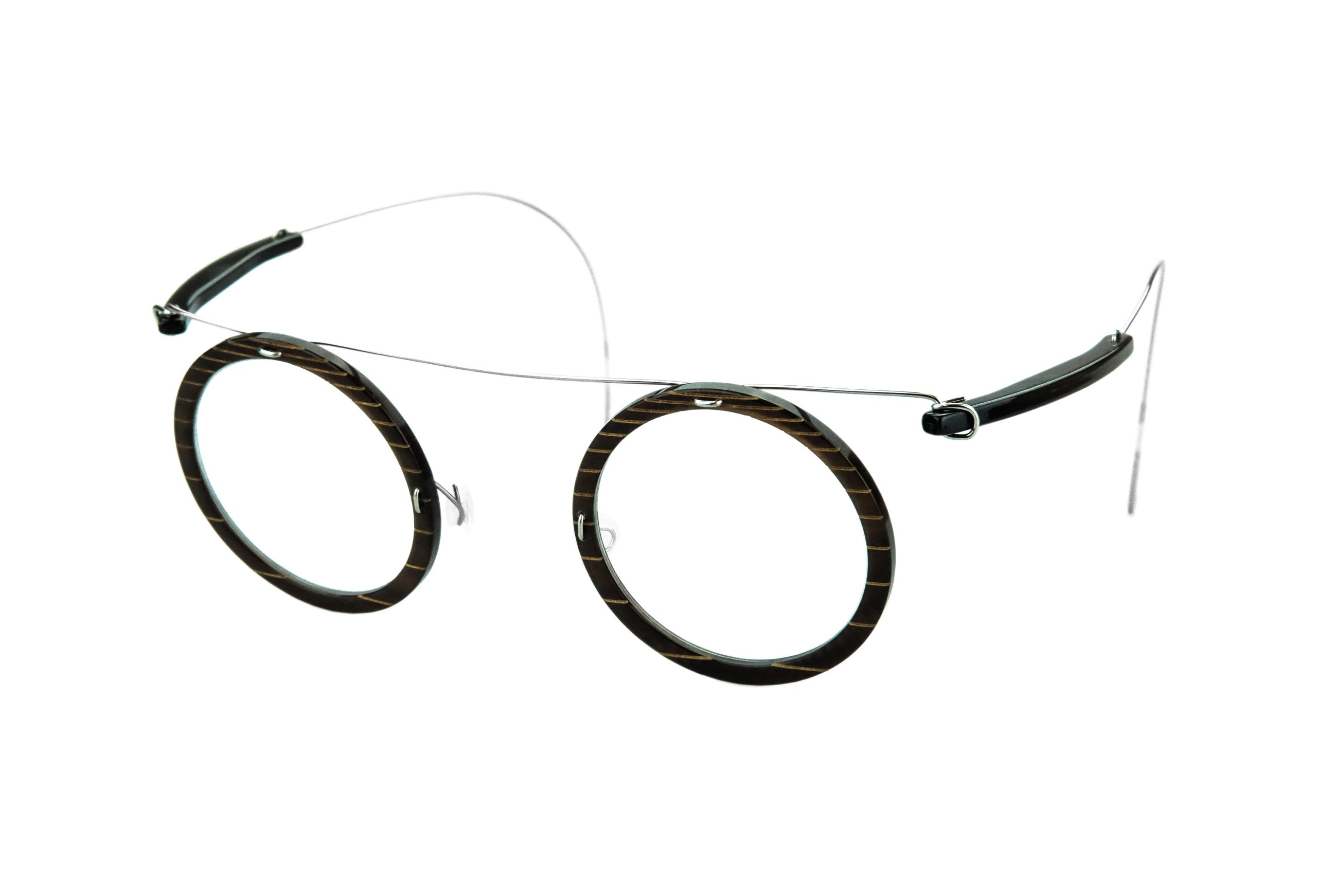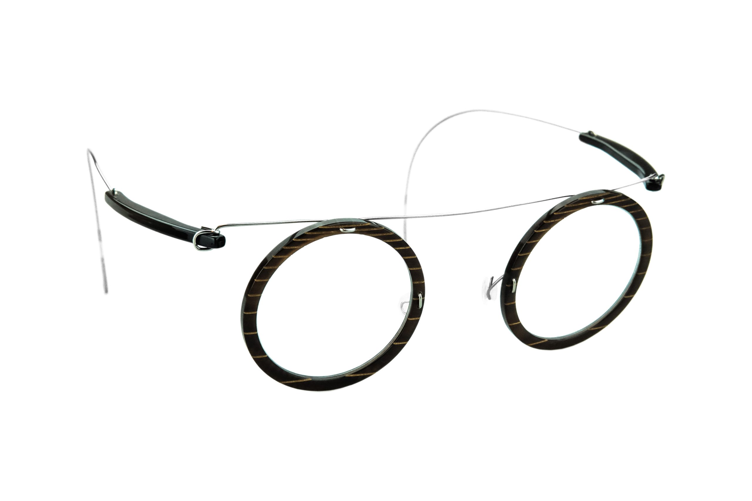 Estremamente resistente grazie all’uso di titanio rinforzato per cerniere e ponte, questo Alonia Gyro da vista monta stanghette e frontale in corno naturale marrone con incisioni.