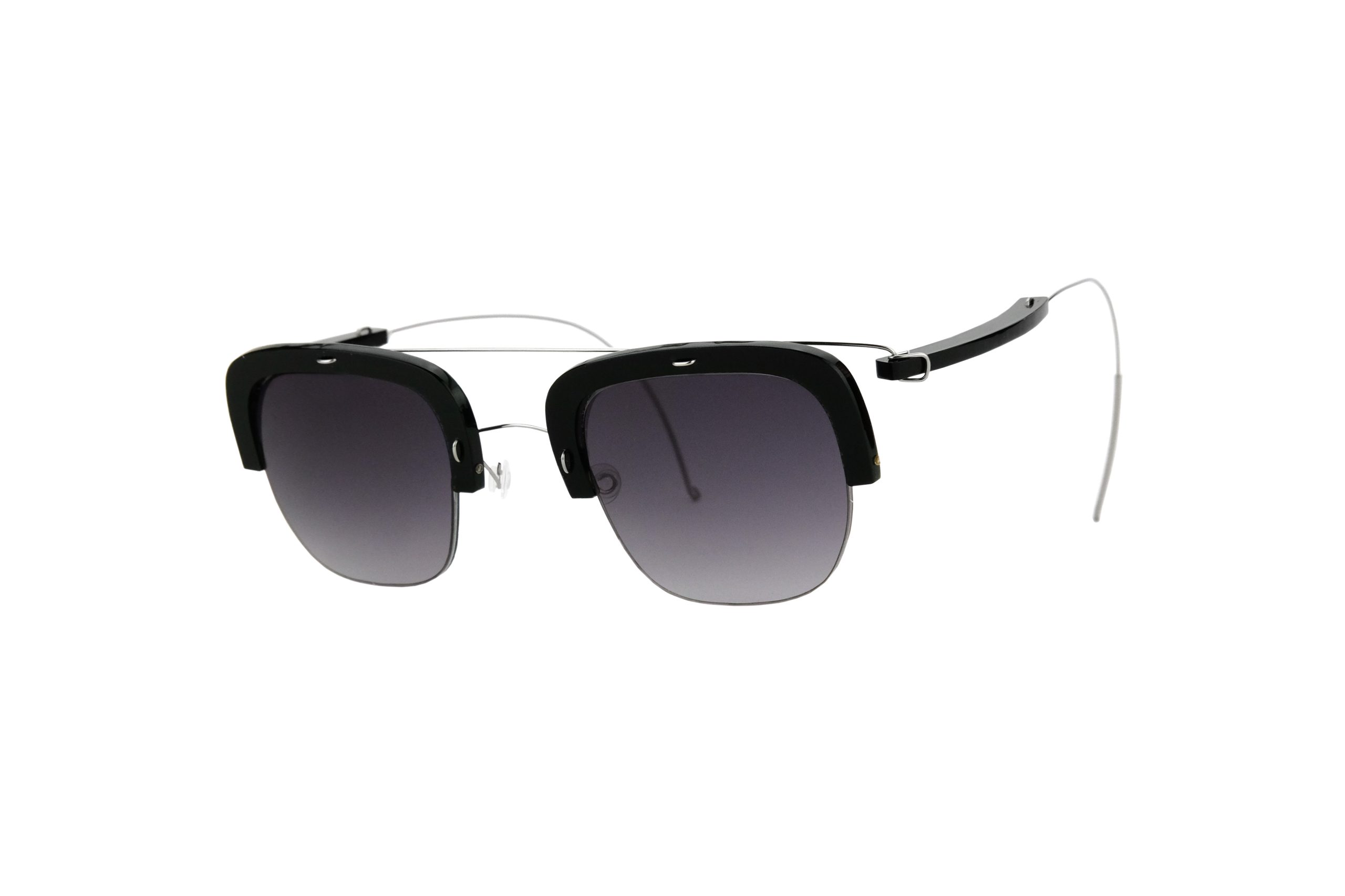 Estremamente resistente grazie all’uso di titanio rinforzato per cerniere e ponte, questo Avaton da sole monta stanghette e frontale in plexiglas nero e titanio.