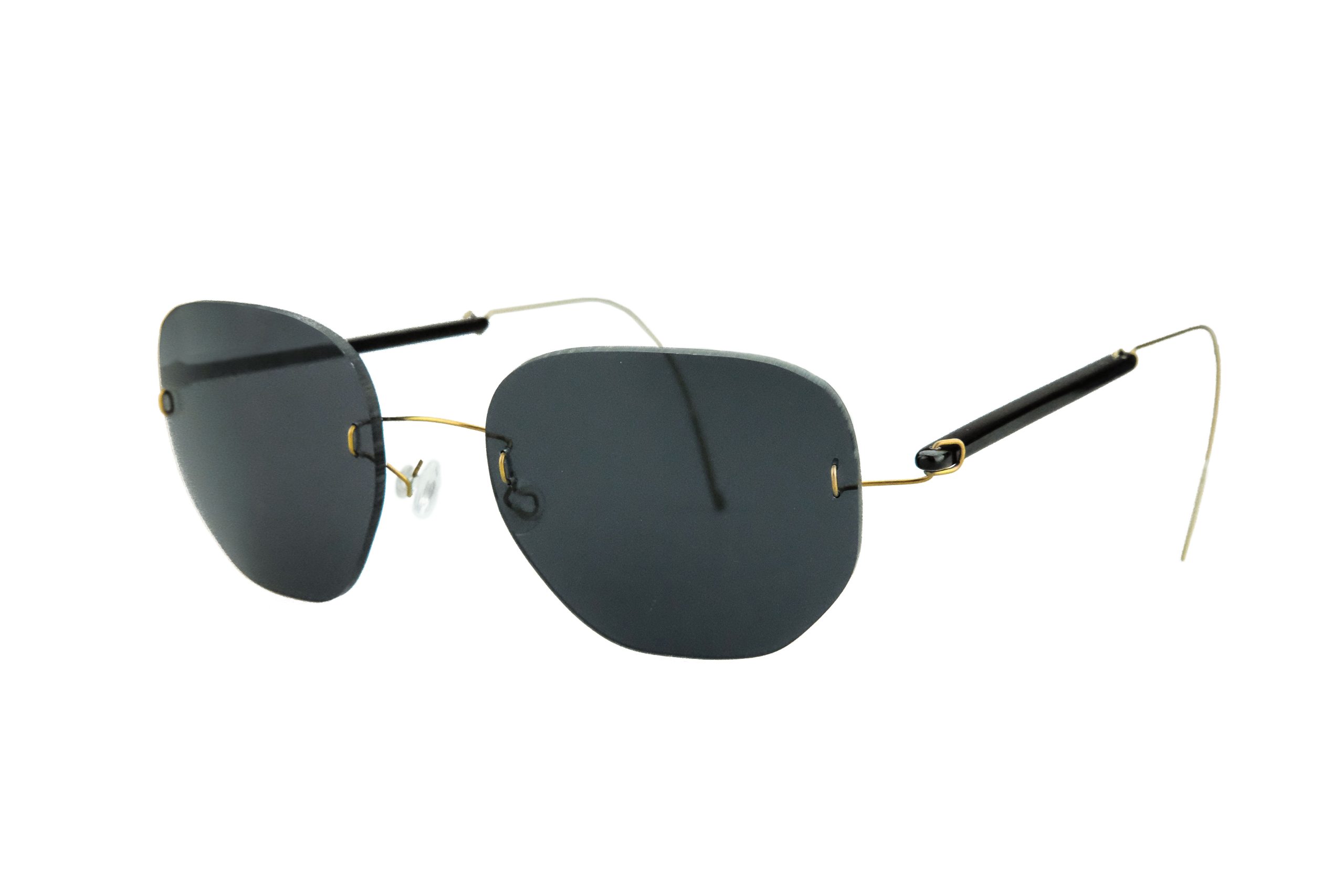 Estremamente resistente grazie all’uso di titanio rinforzato per cerniere e ponte, questo Fidema da sole monta stanghette in corno naturale nero con terminale in titanio color oro.