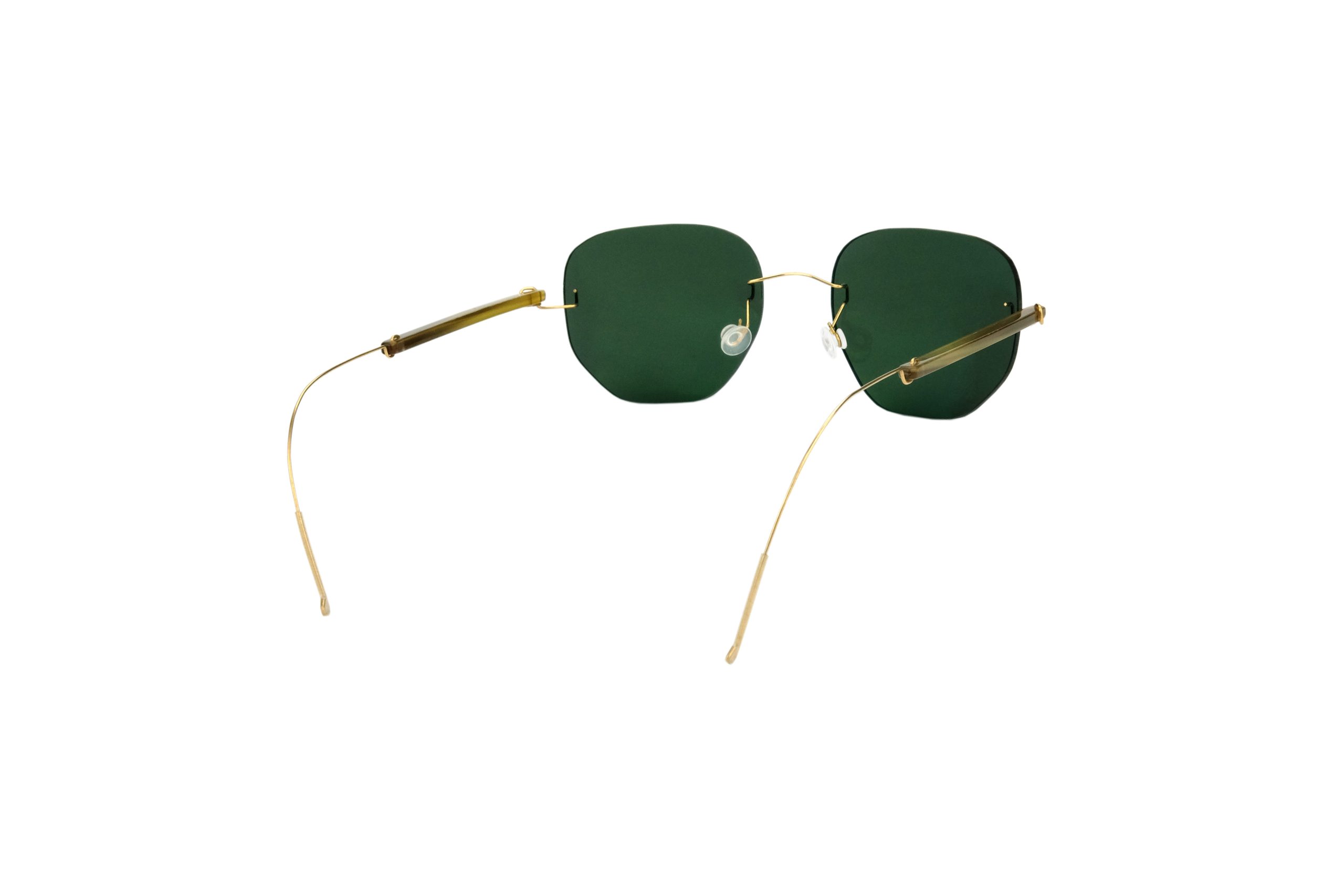 Estremamente resistente grazie all’uso di titanio rinforzato per cerniere e ponte, questo Fidema da sole monta stanghette in corno naturale marrone con terminale in oro 14kts.