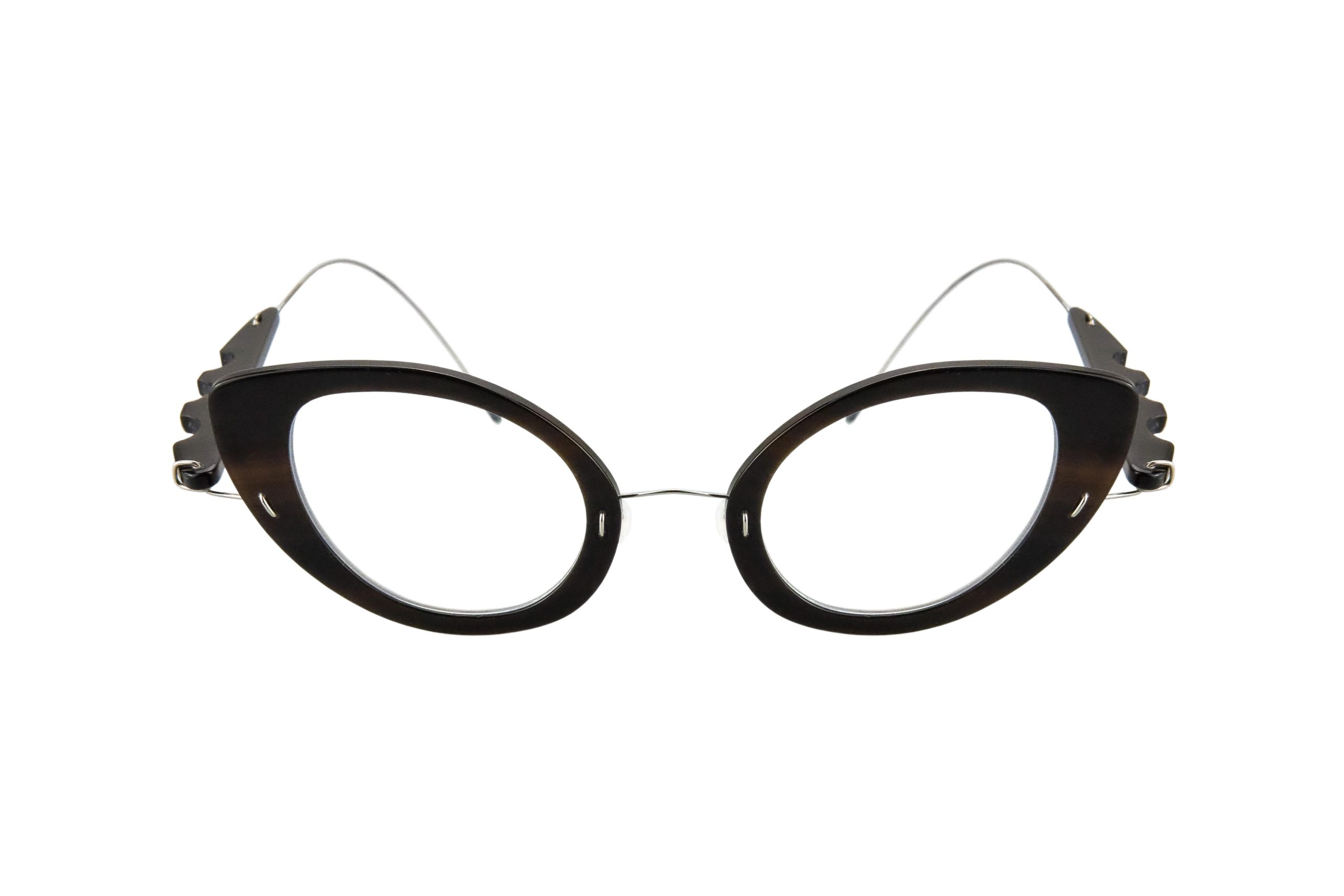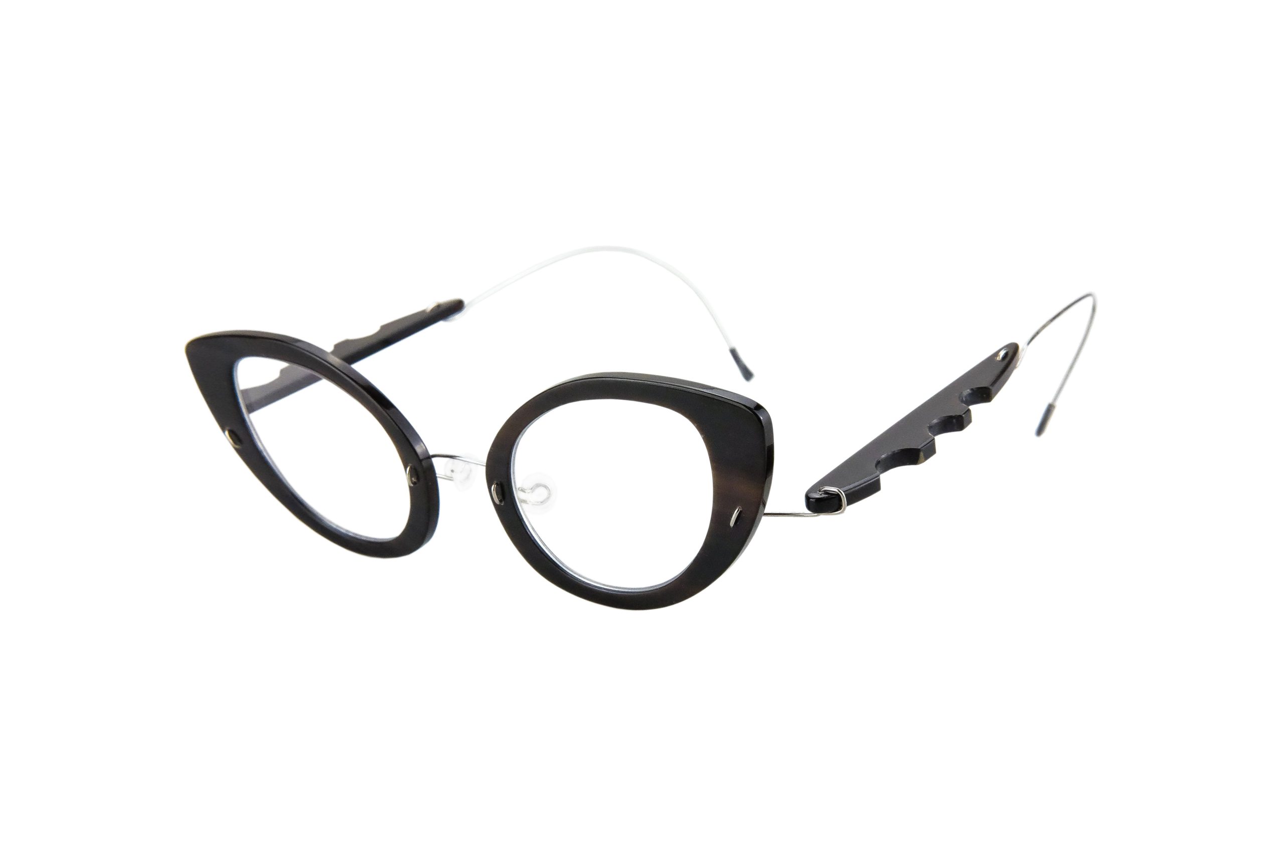 Estremamente resistente grazie all’uso di titanio rinforzato per cerniere e ponte, questo Levitha da vista monta stanghette e frontale in corno naturale nero.