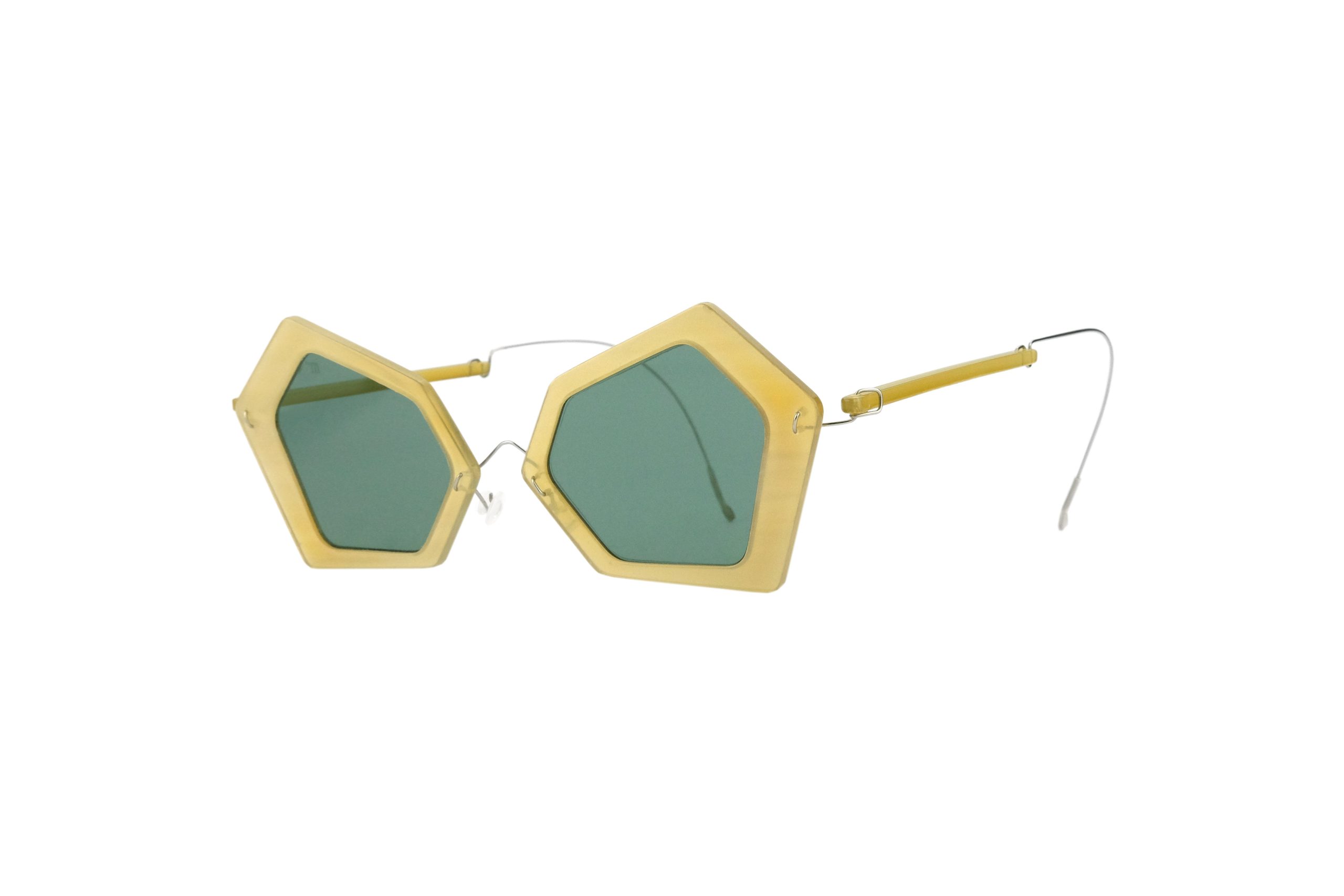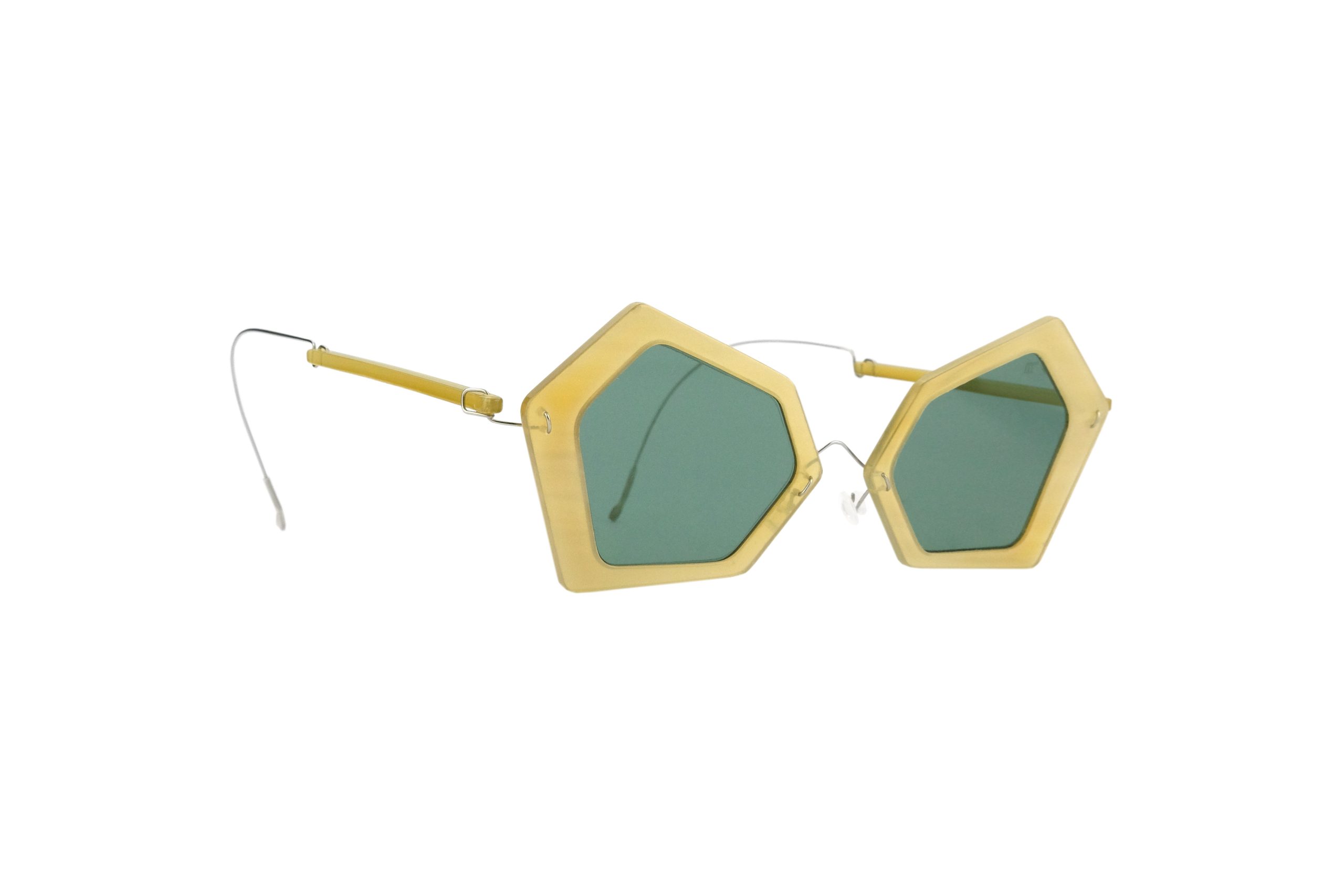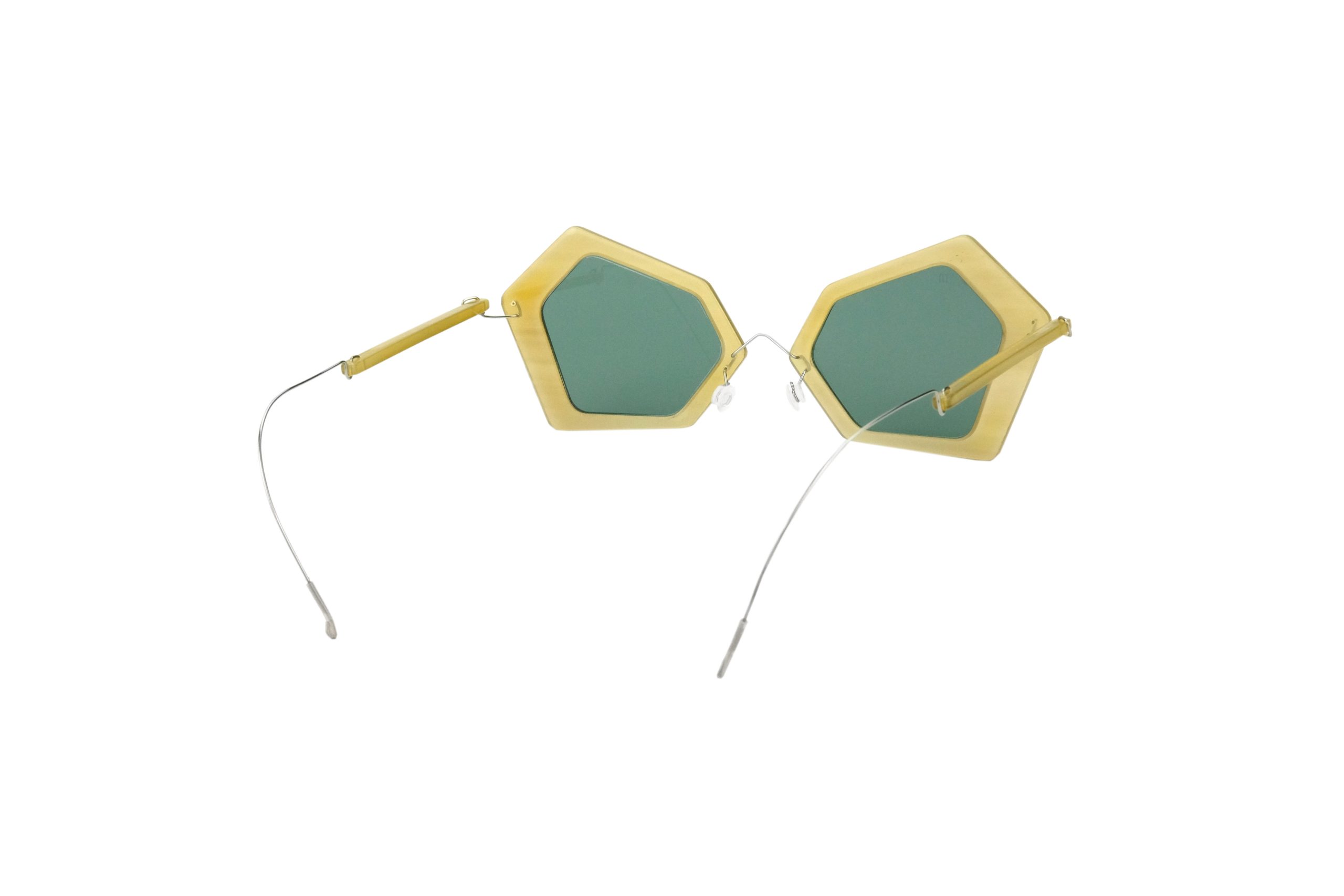 Estremamente resistente grazie all’uso di titanio rinforzato per cerniere e ponte, questo Marmaro da sole monta stanghette e frontale in corno naturale miele.