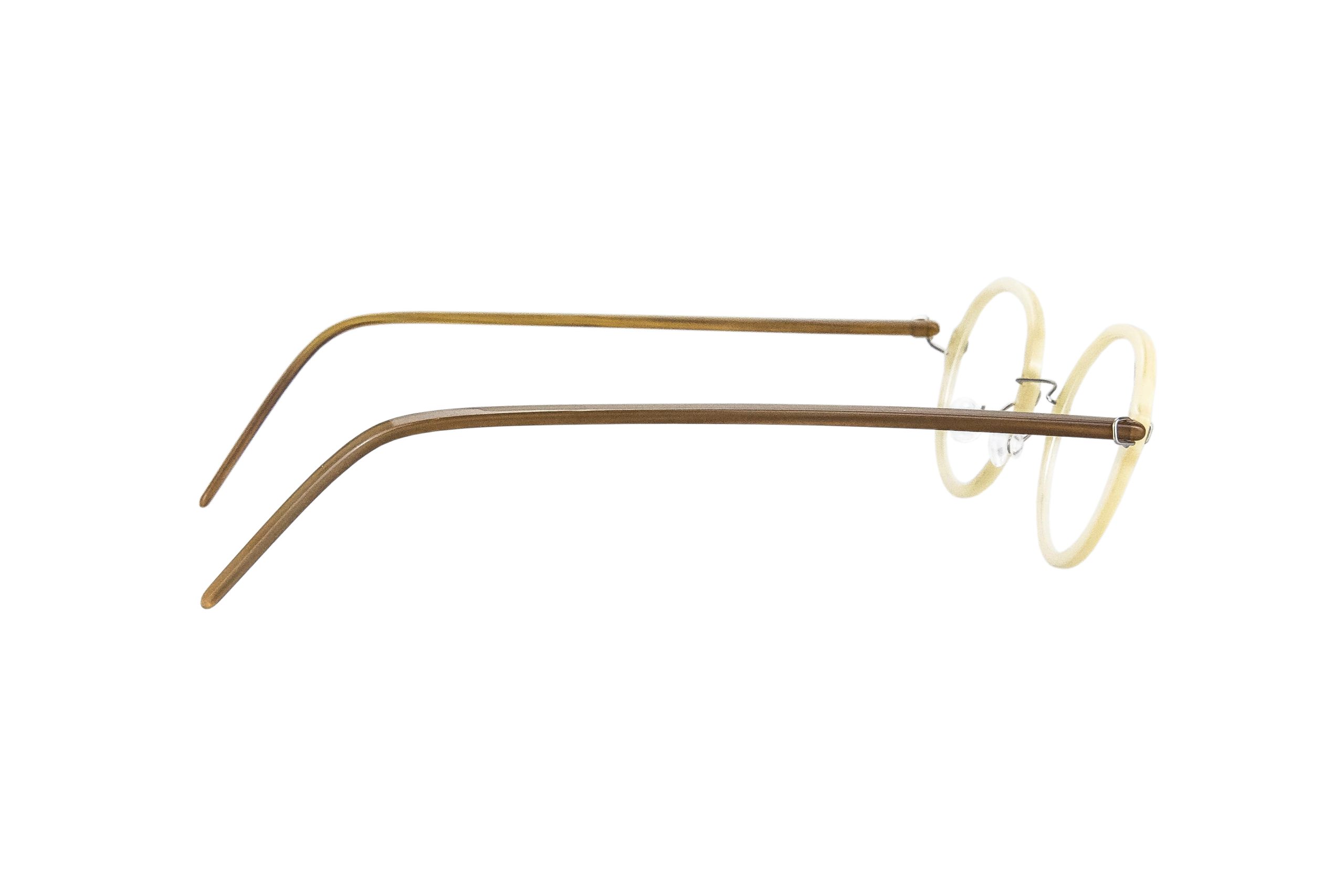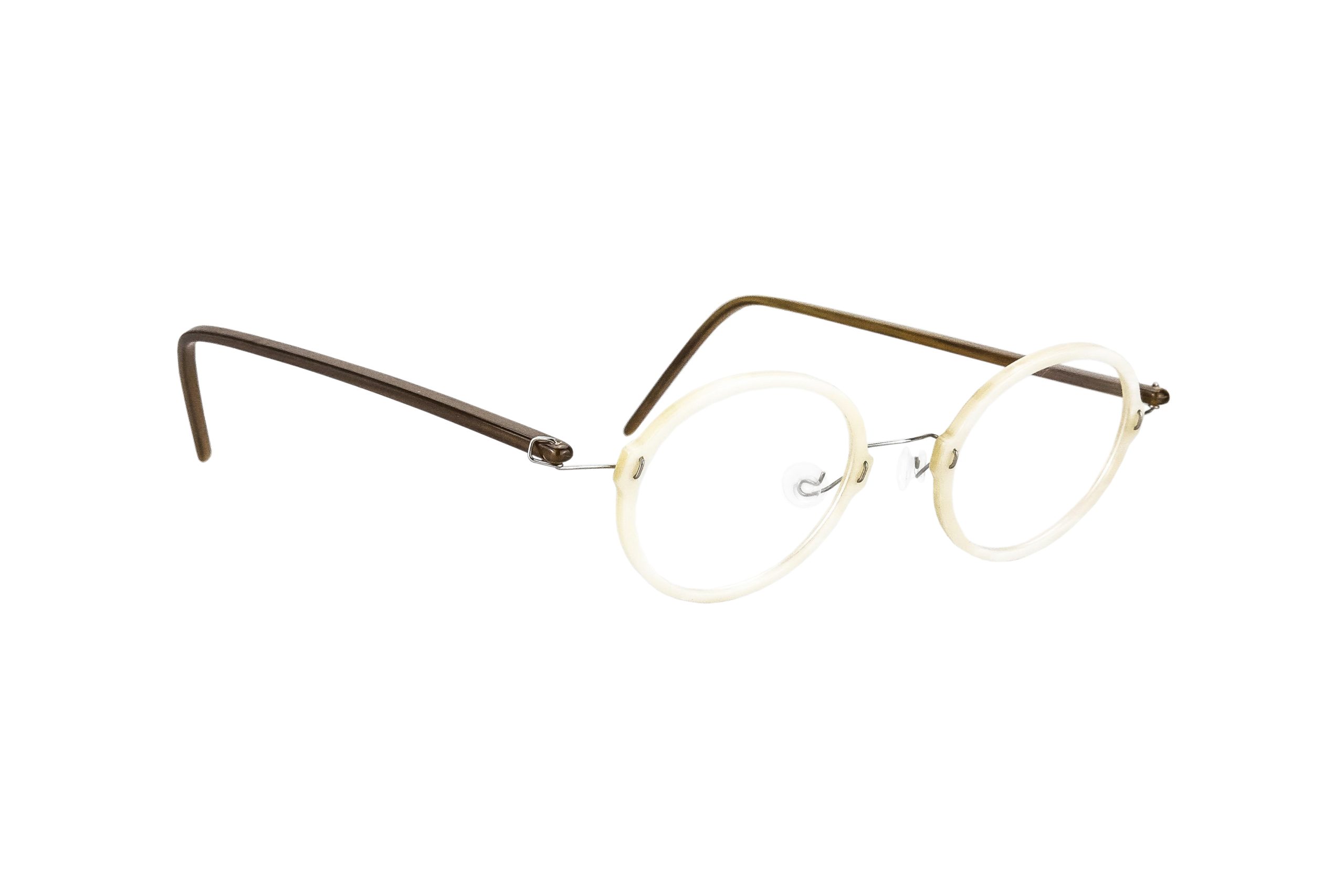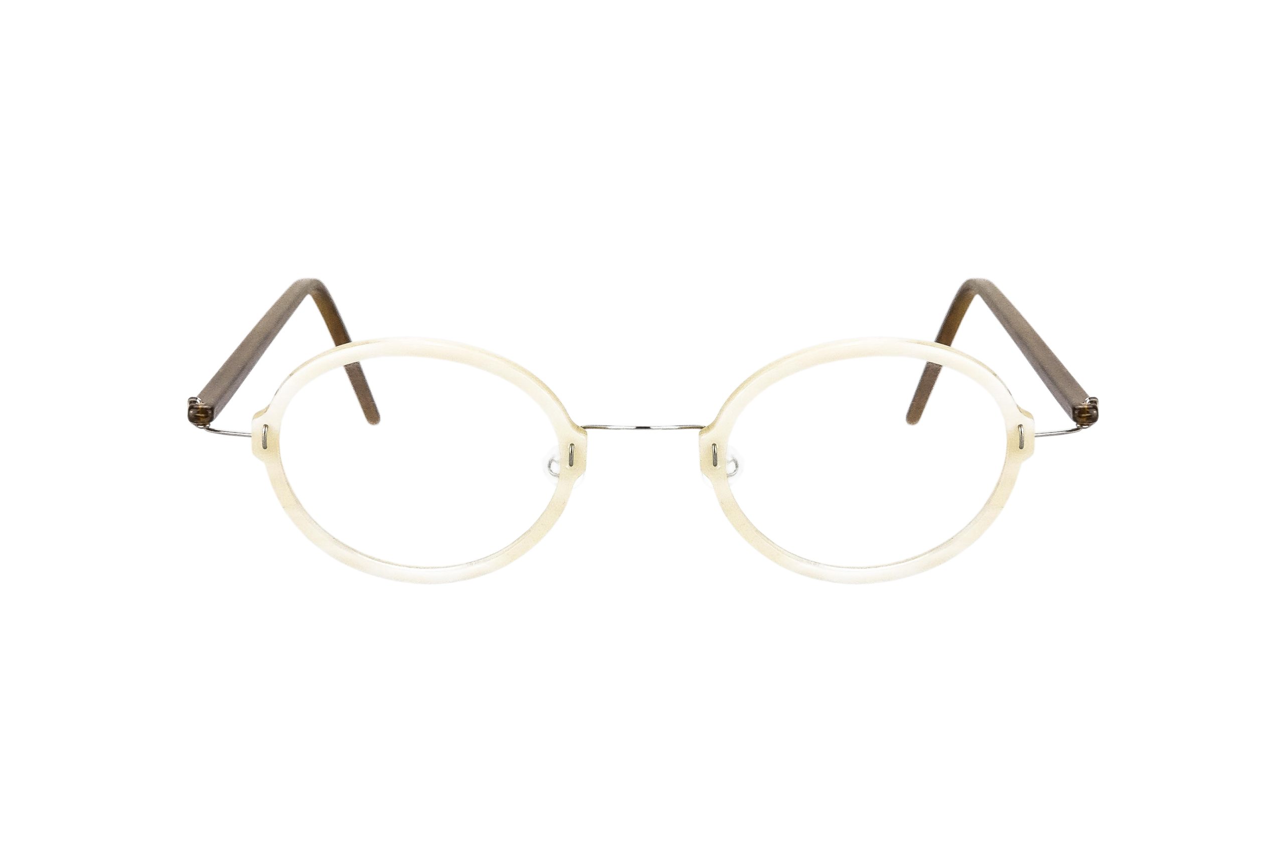 Estremamente resistente grazie all’uso di titanio rinforzato per cerniere e ponte, questo Milo da vista monta stanghette in corno naturale marrone chiaro e frontale in corno naturale bianco.
