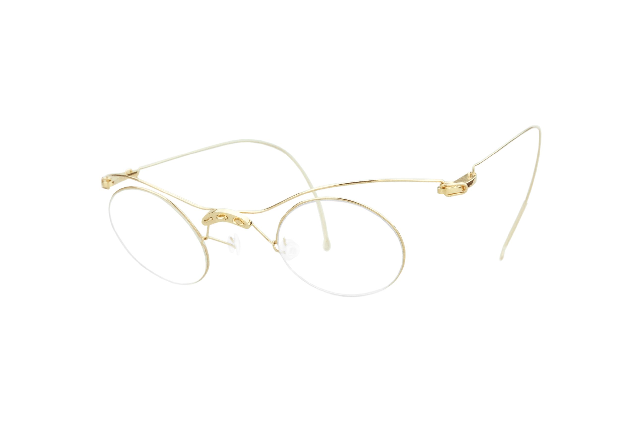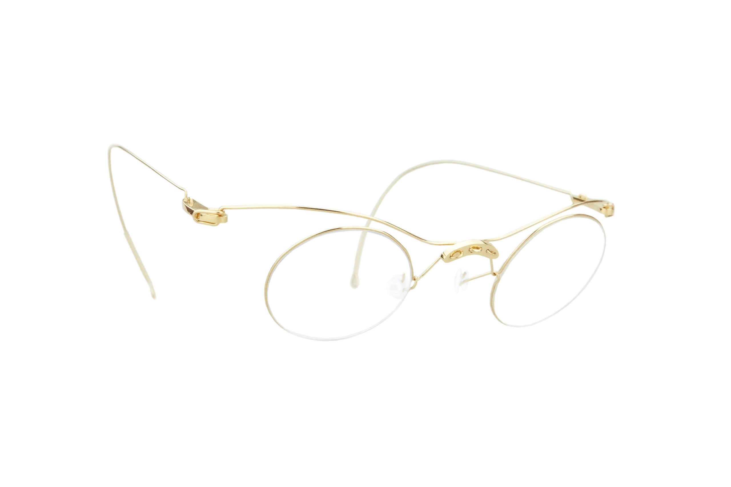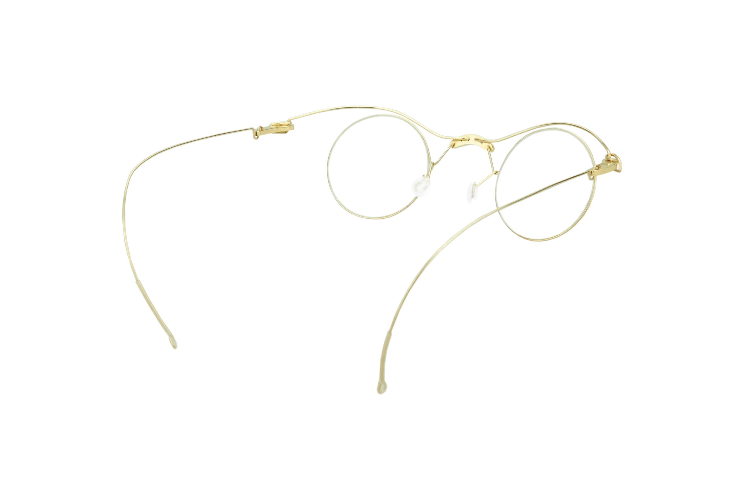 Estremamente resistente grazie all’uso di titanio rinforzato per cerniere e ponte, questo Narthaki da vista monta frontale e stanghette in oro 14kts con inserti in oro 18kts.