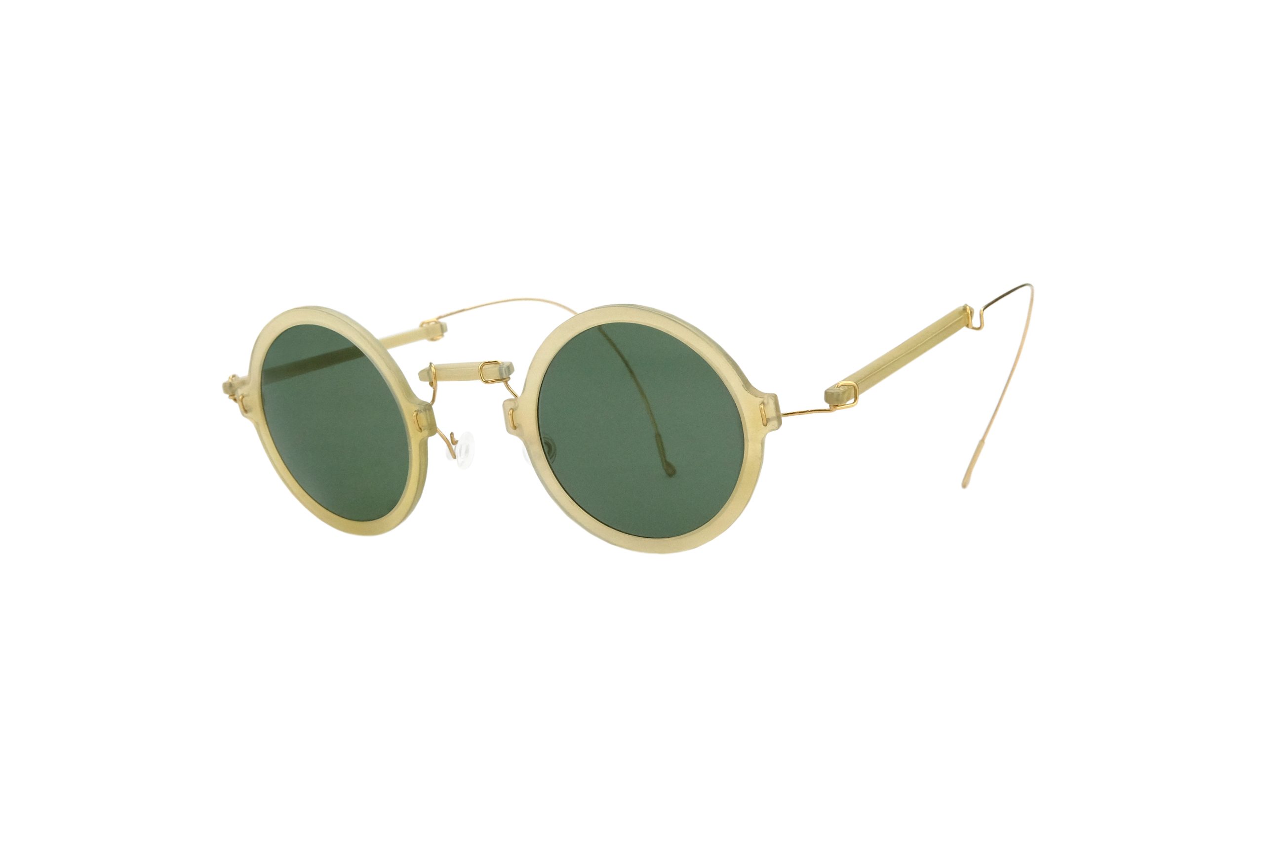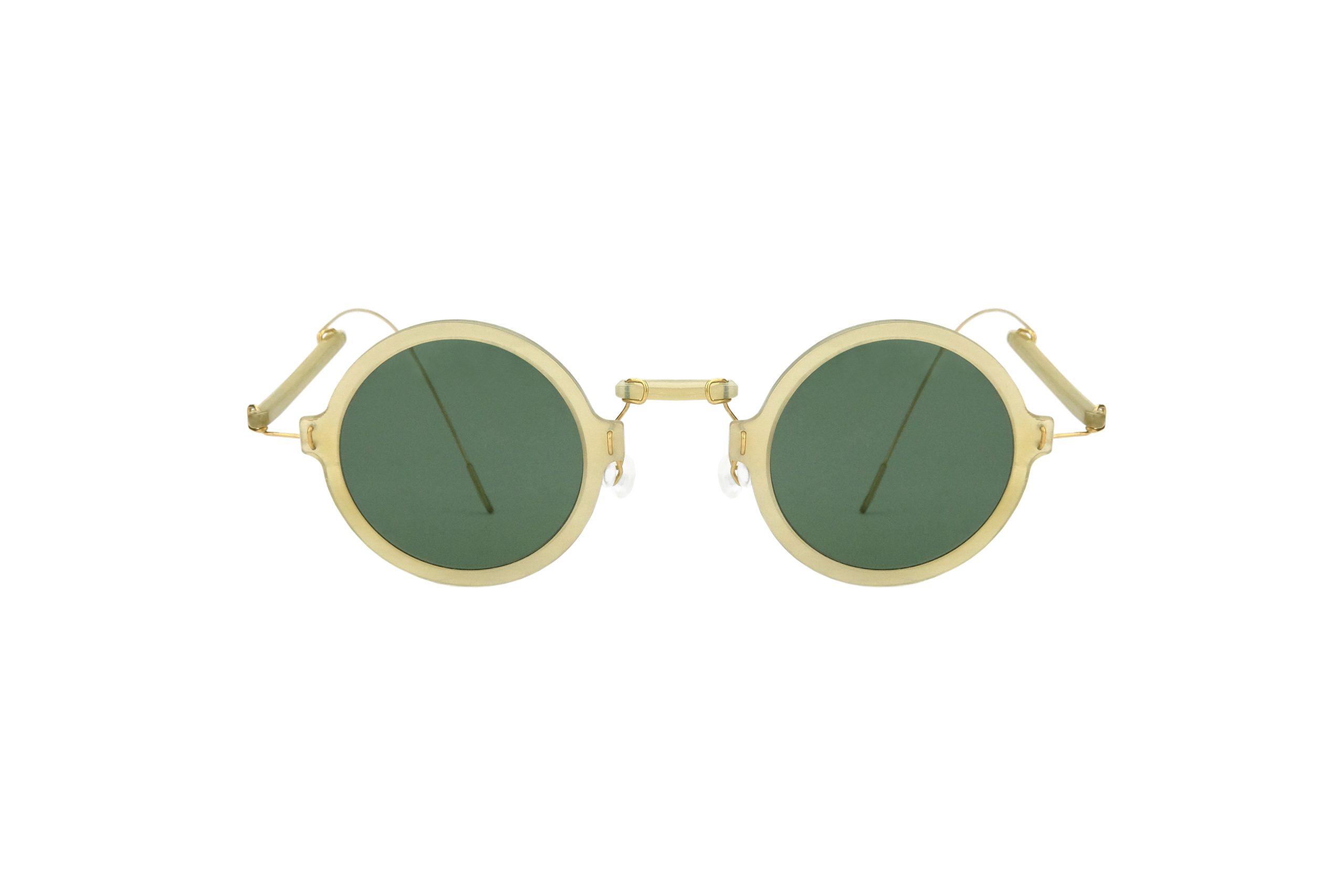 Estremamente resistente grazie all’uso di filo d’oro 14kts per cerniere e ponte, questo Othoni da sole monta stanghette e frontale in corno naturale miele.