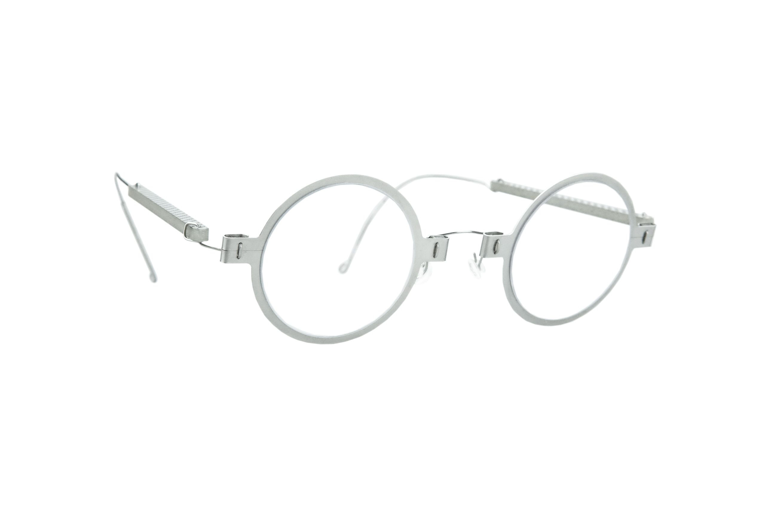 Estremamente resistente grazie all’uso di titanio rinforzato per cerniere e ponte, questo Othoni da vista monta stanghette in fibra di carbonio color titanio e frontale in titanio naturale.
