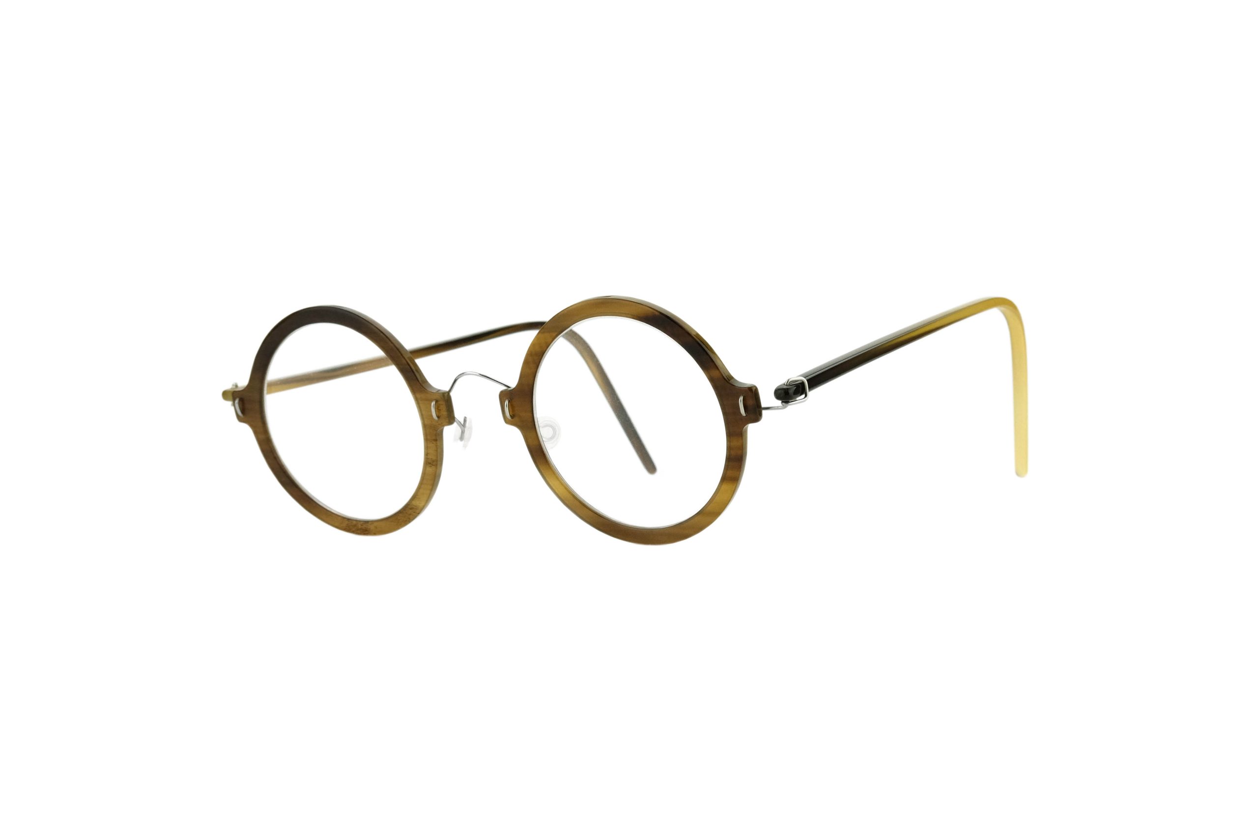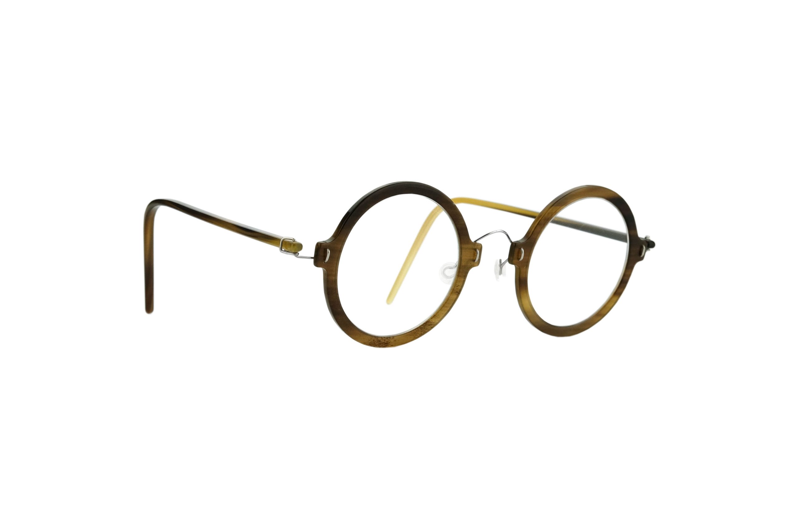 Estremamente resistente grazie all’uso di titanio rinforzato per cerniere e ponte, questo Othoni da vista monta stanghette e frontale in corno naturale screziato.
