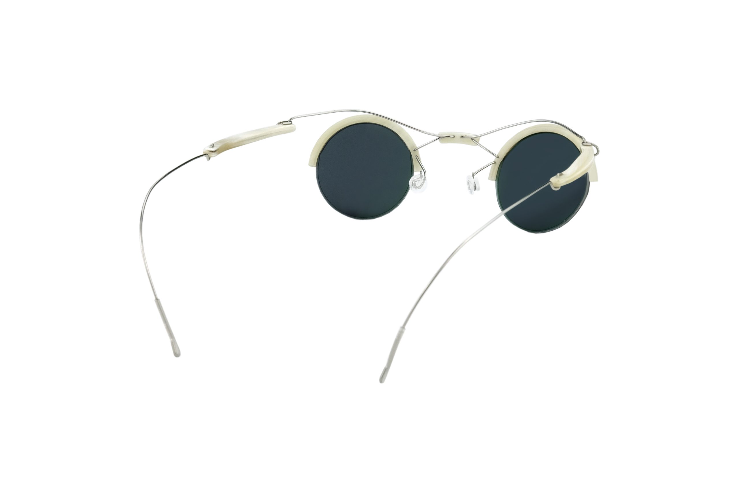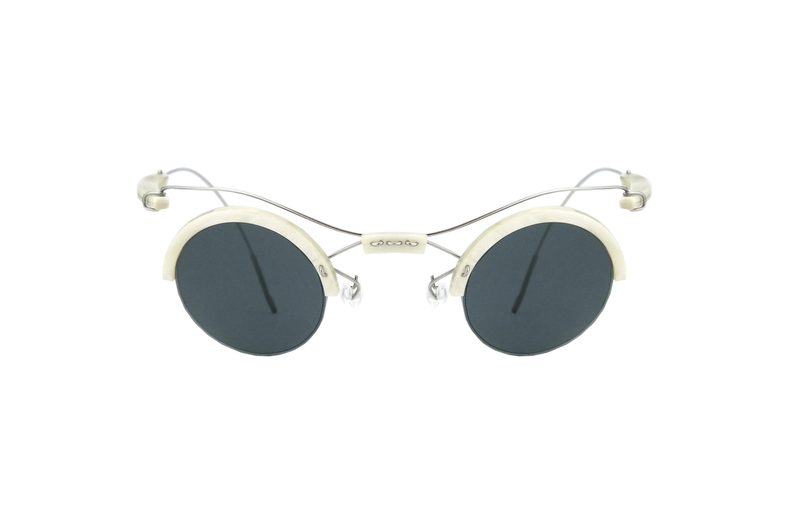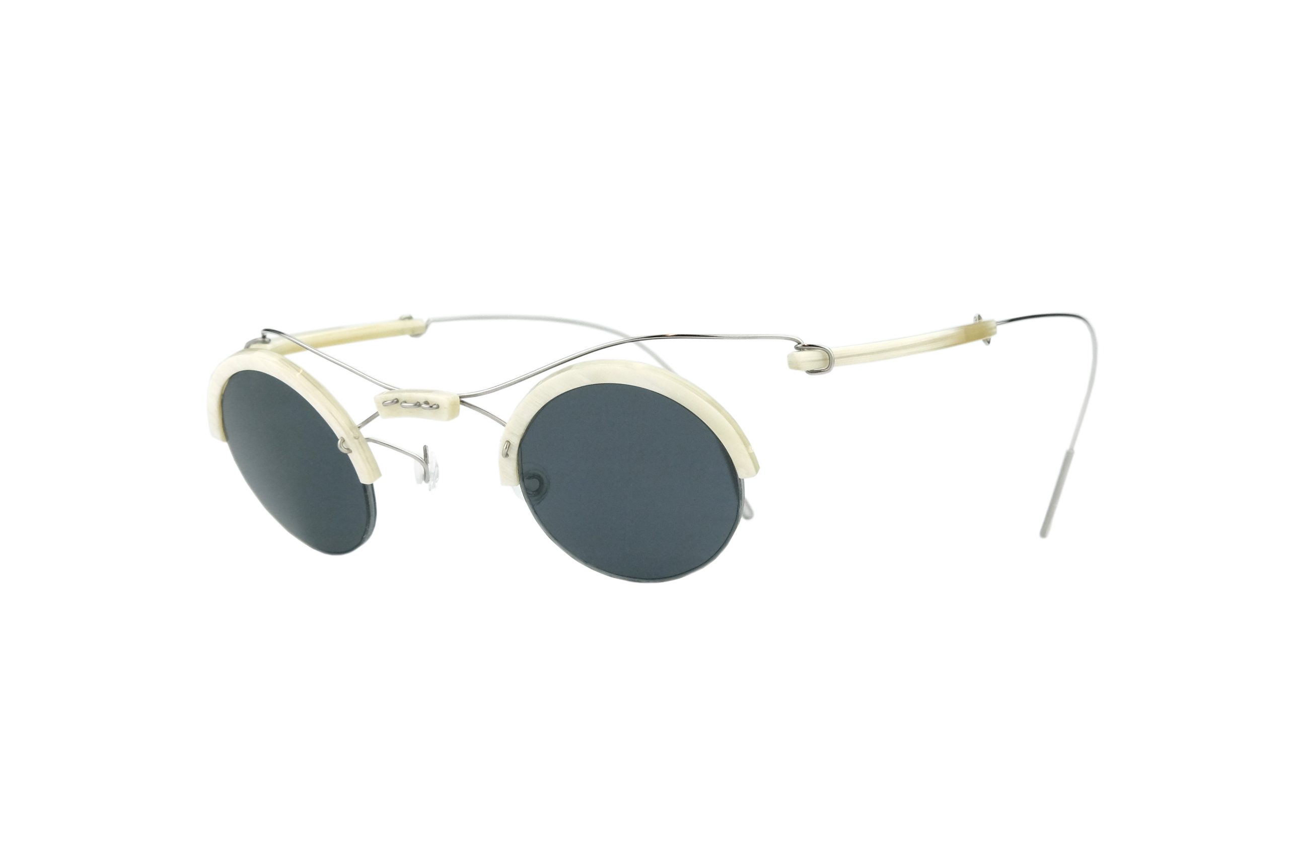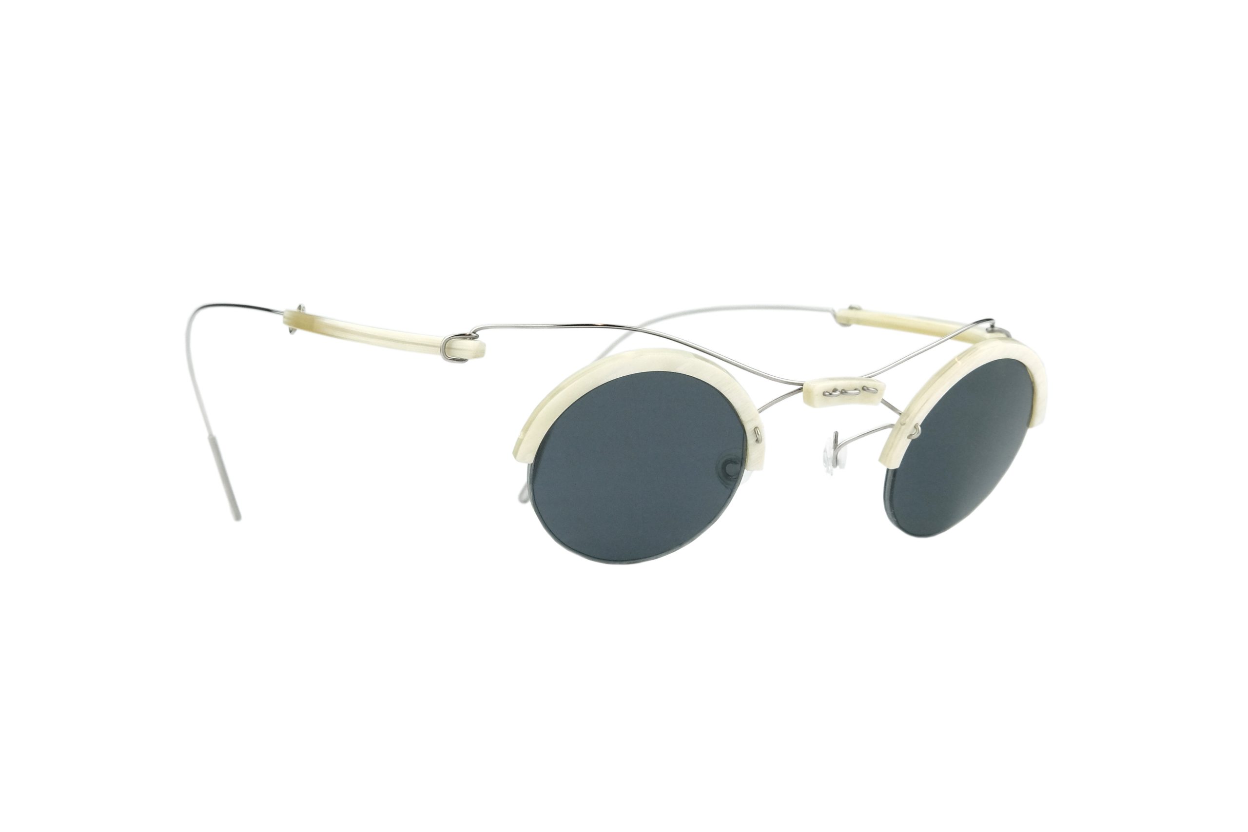 | Montatura | Stanghette e Frontale in Corno Naturale Bianco con terminale in Titanio |