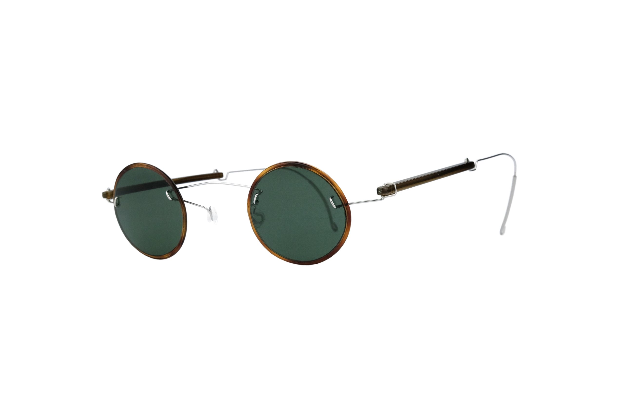 Estremamente resistente grazie all’uso di titanio rinforzato per cerniere e ponte, questo Paximadia da sole monta stanghette in corno naturale marrone con terminale in titanio.