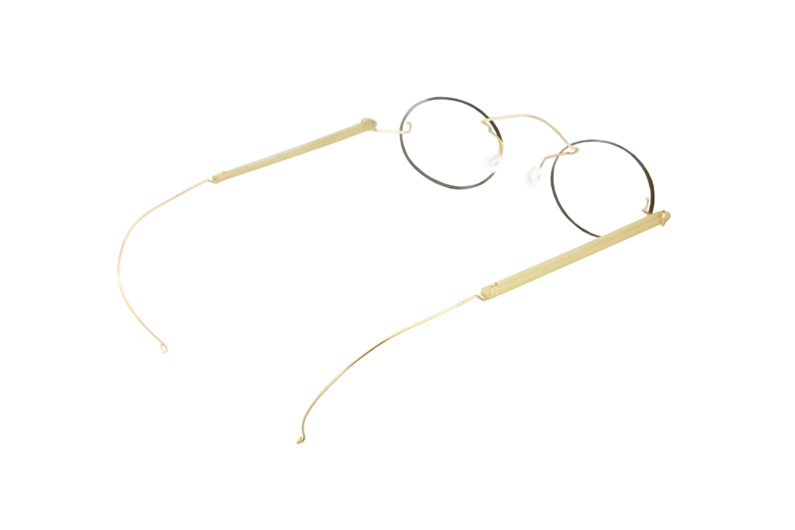 | Montatura | Cerchi in Corno Naturale Miele e stanghette in Oro 14kts |