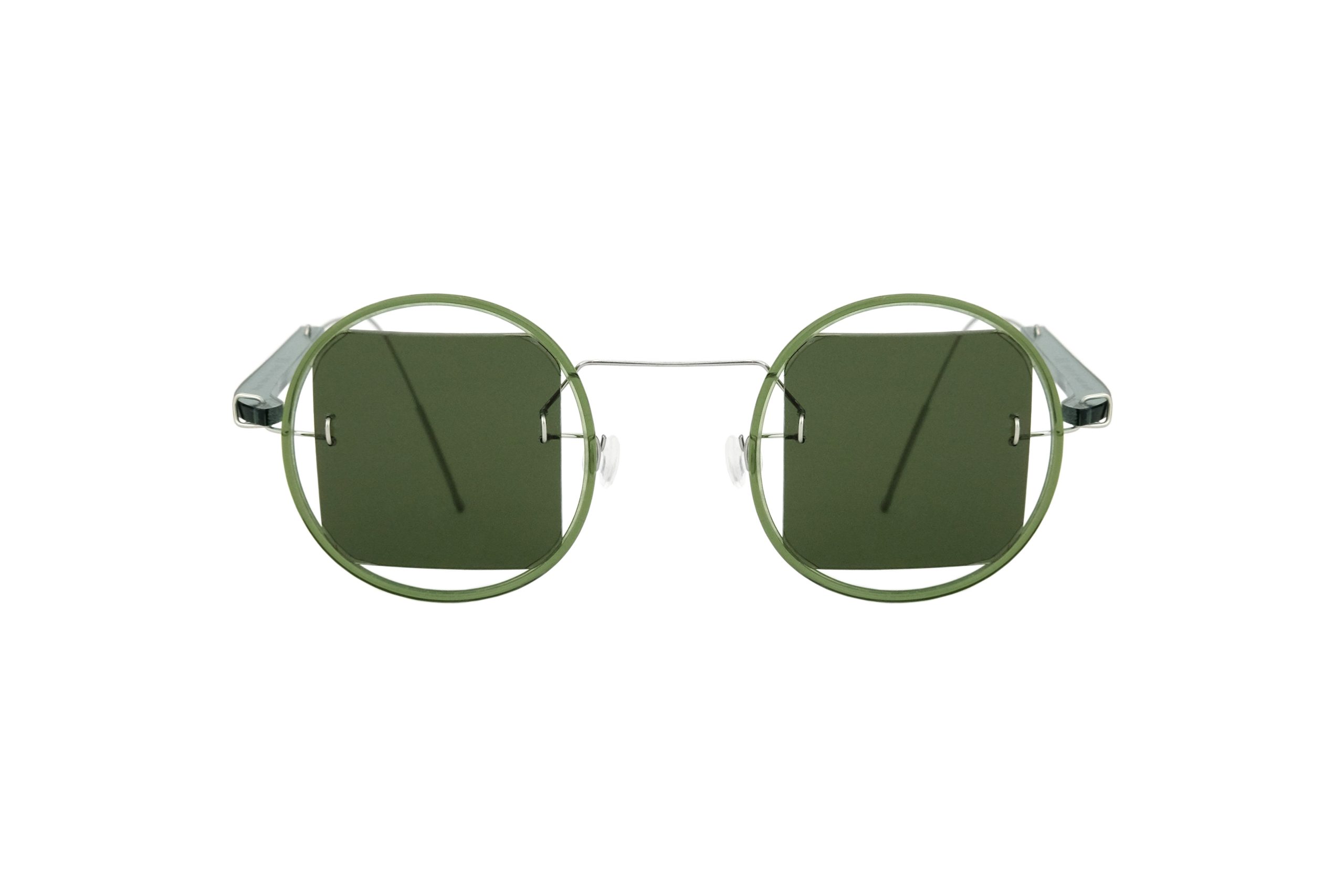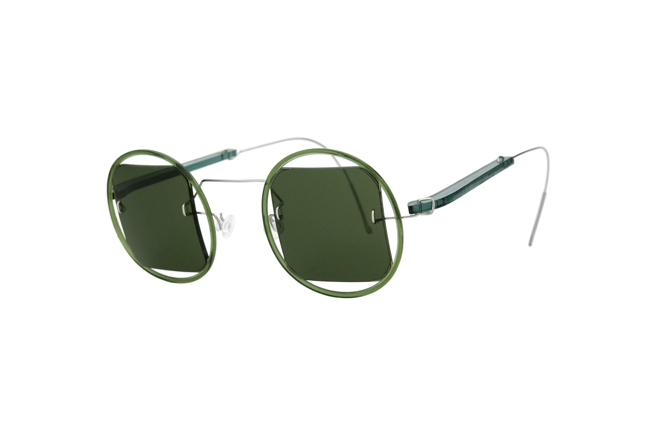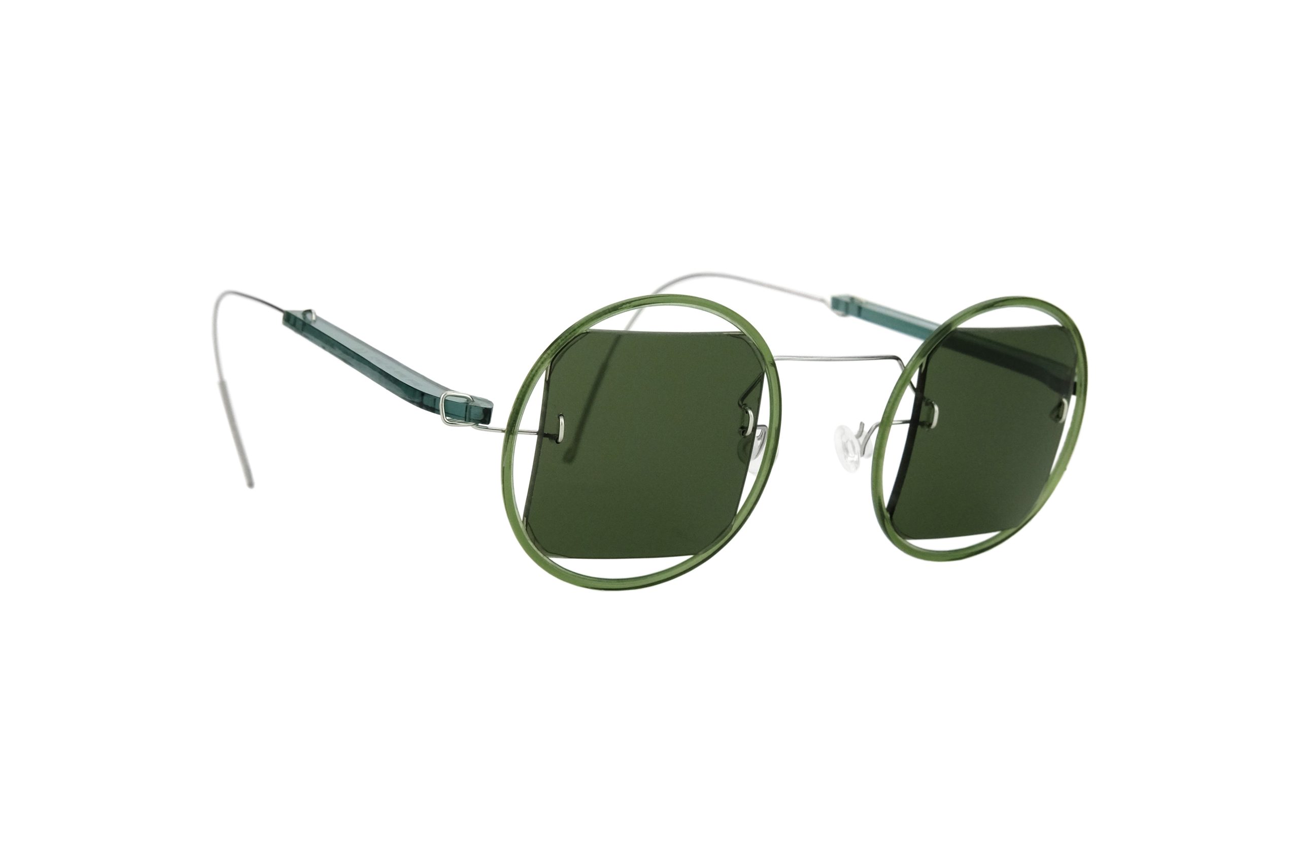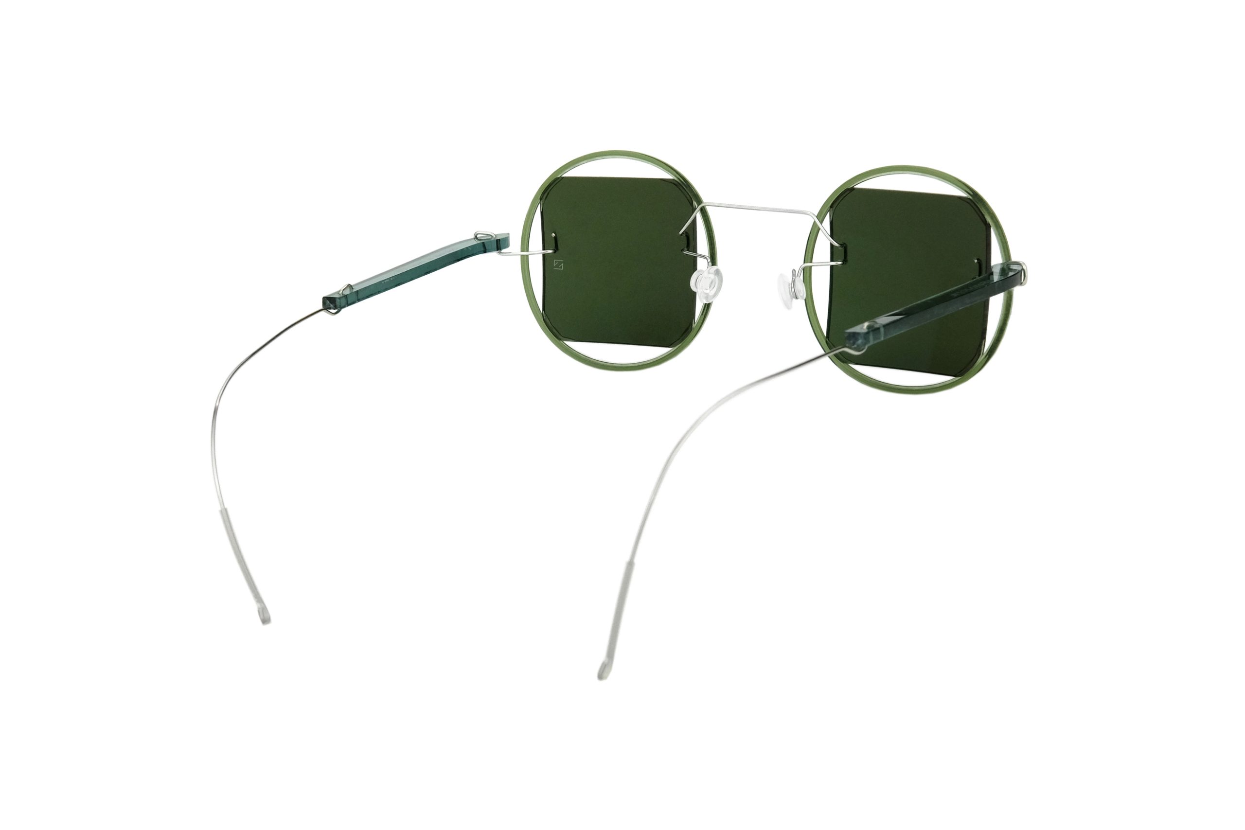 | Montatura | Stanghette in Plexiglas Verde Trasparente e Titanio |
