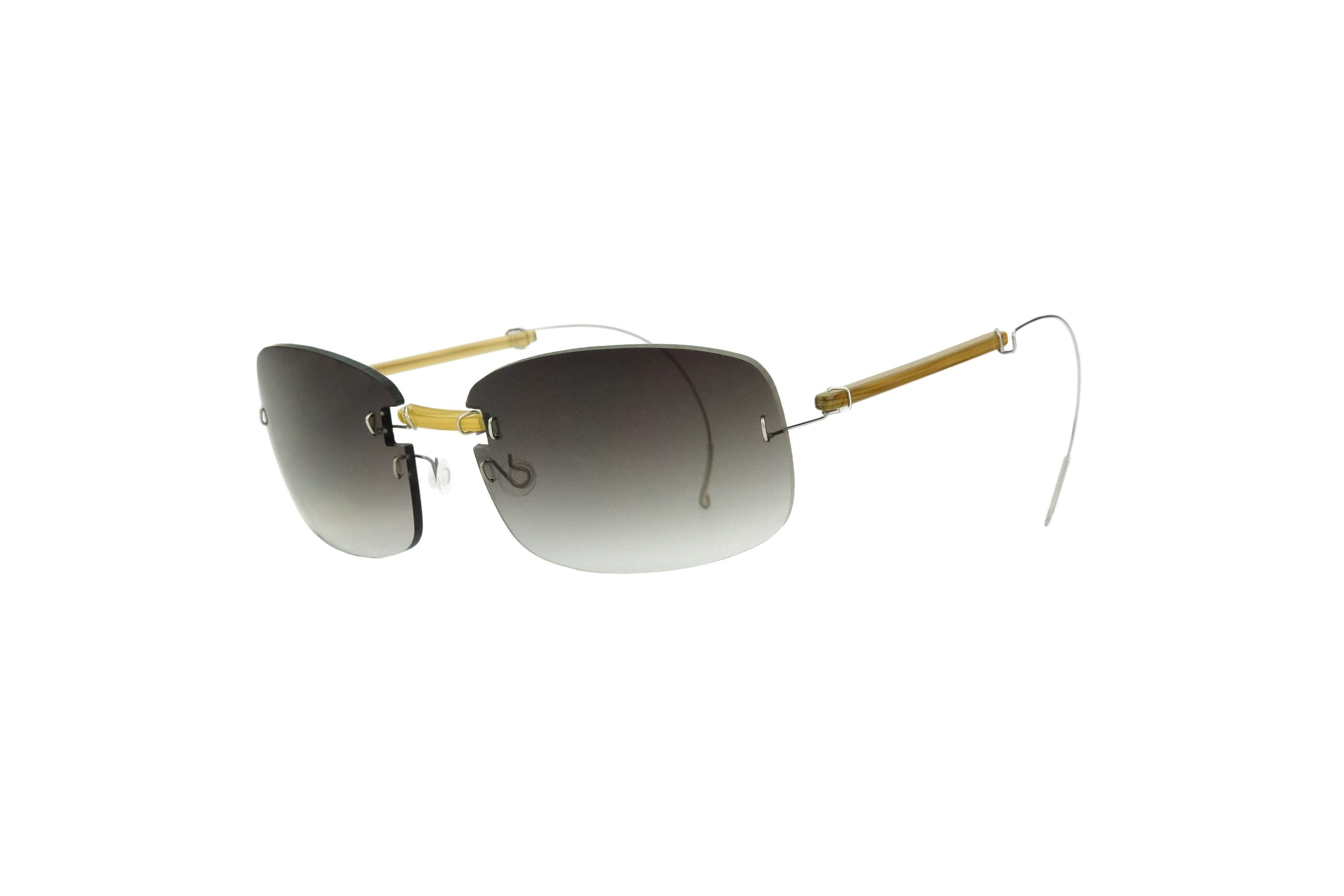 Estremamente resistente grazie all’uso di titanio rinforzato per cerniere e ponte, questo Tino da sole monta stanghette e ponte in corno naturale miele con terminale in titanio.